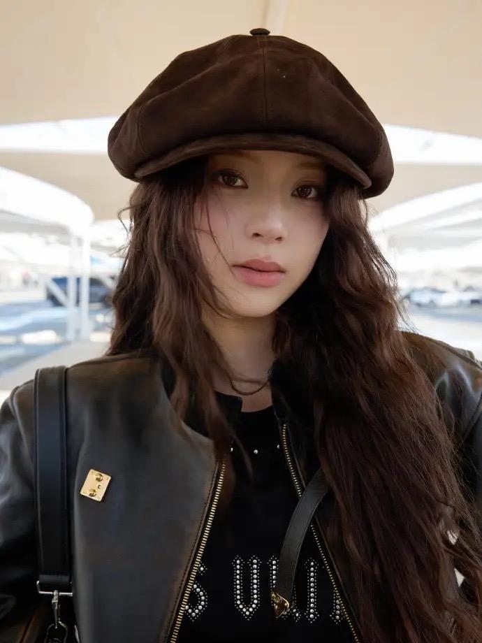 年輕的臉,即便是懟臉拍也能扛得住。蓬鬆的羊毛卷、很溫柔的棕色系,搭配一頂八角帽,顯得臉型更加小巧精緻。臉色緋紅、多了幾分少女的純美。