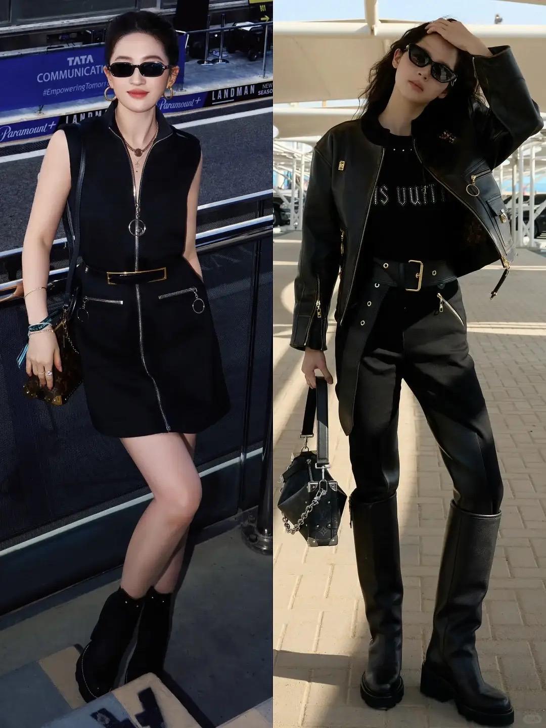 以往的歐陽娜娜,總是以甜美形象示人。這次亮相,酷颯風格拿捏的也很好。皮衣外套、高腰褲,個性的黑超墨鏡,顛覆了以往對她的認知。