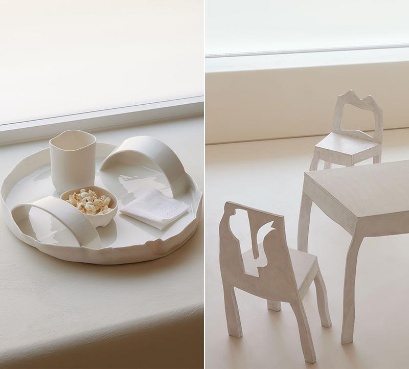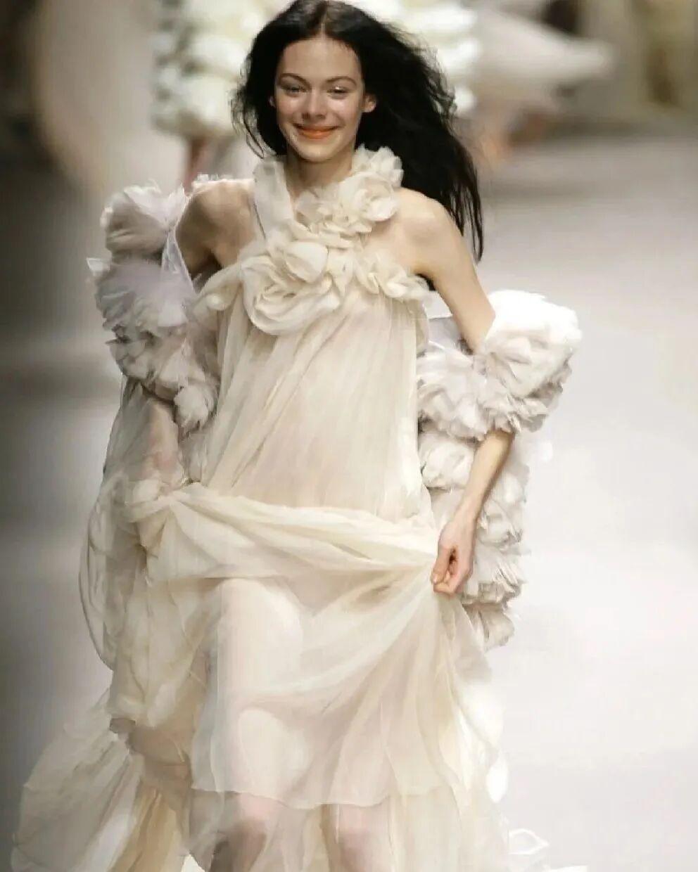 “雲上舞白”的溫潤色調和新中式的適配度也很高。在2003年,Prada就用白色做過中式設計。▼