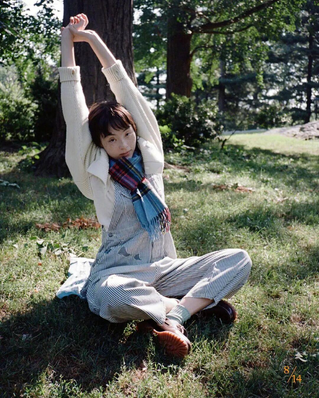 在配色方面,經典又日常的公式是“白+綠”。可以通過服裝的疊搭實現,也可以低調地反映在配飾上。▼