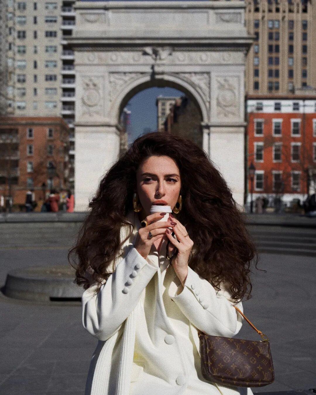 可以在任意一件棕色外套裏,無腦穿一身白。是最常見的秋冬搭配公式。▼