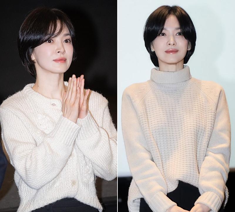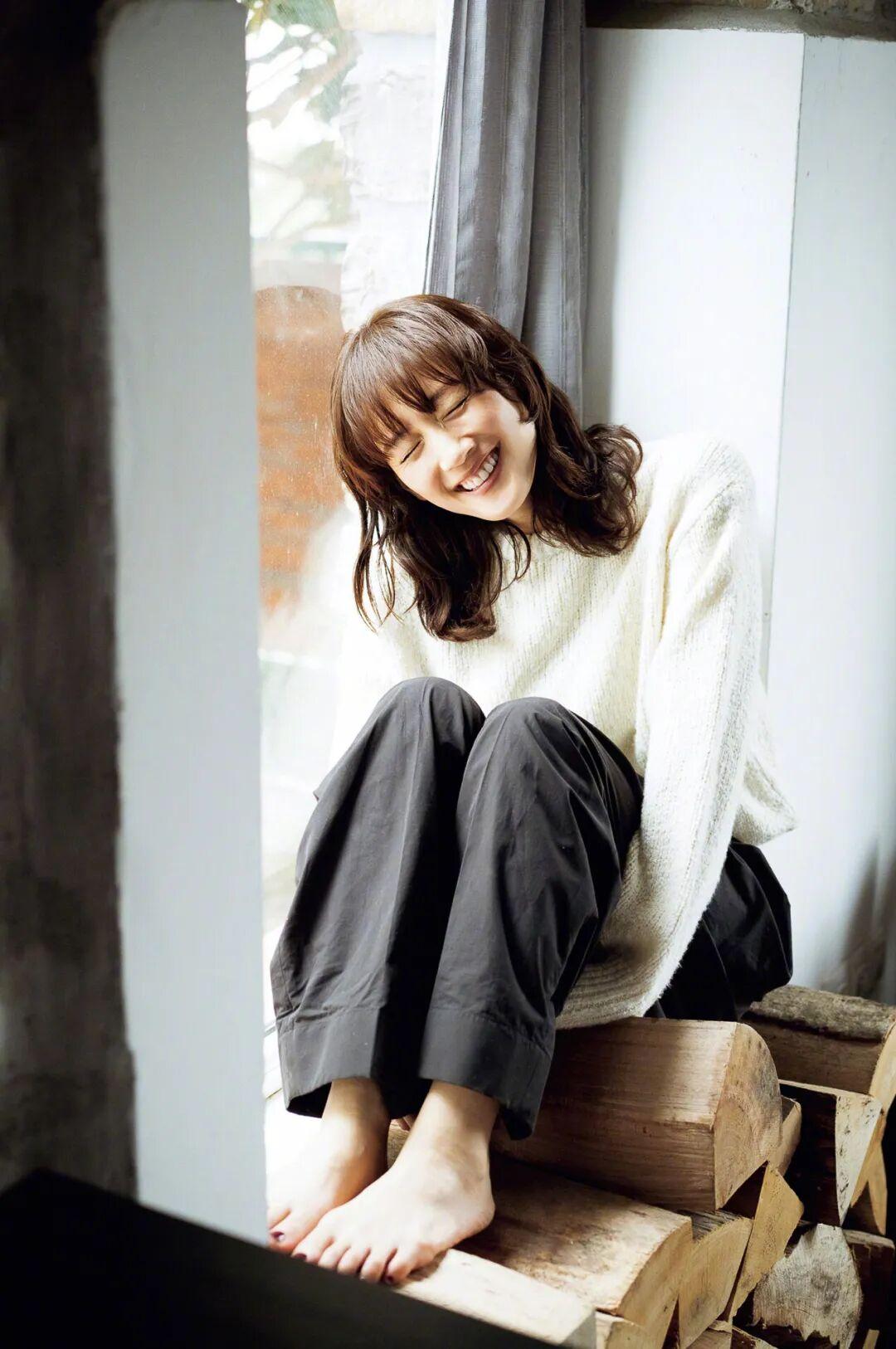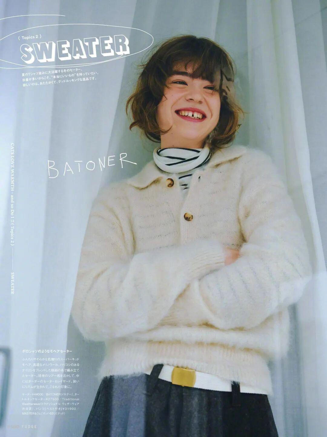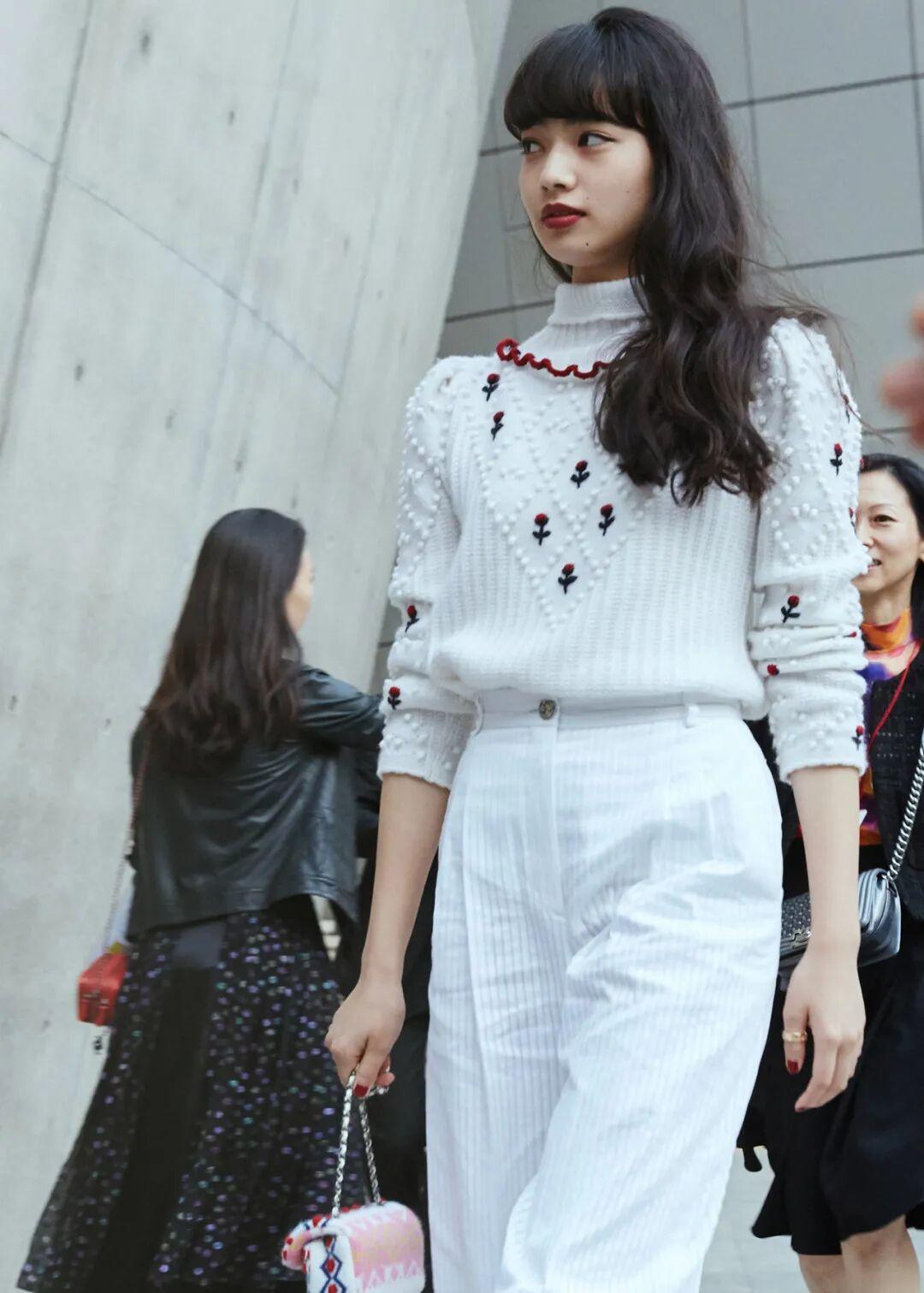 絞花白毛衣也很經典,不過面料普遍偏厚實,容易顯壯。▼