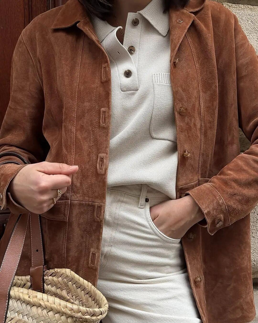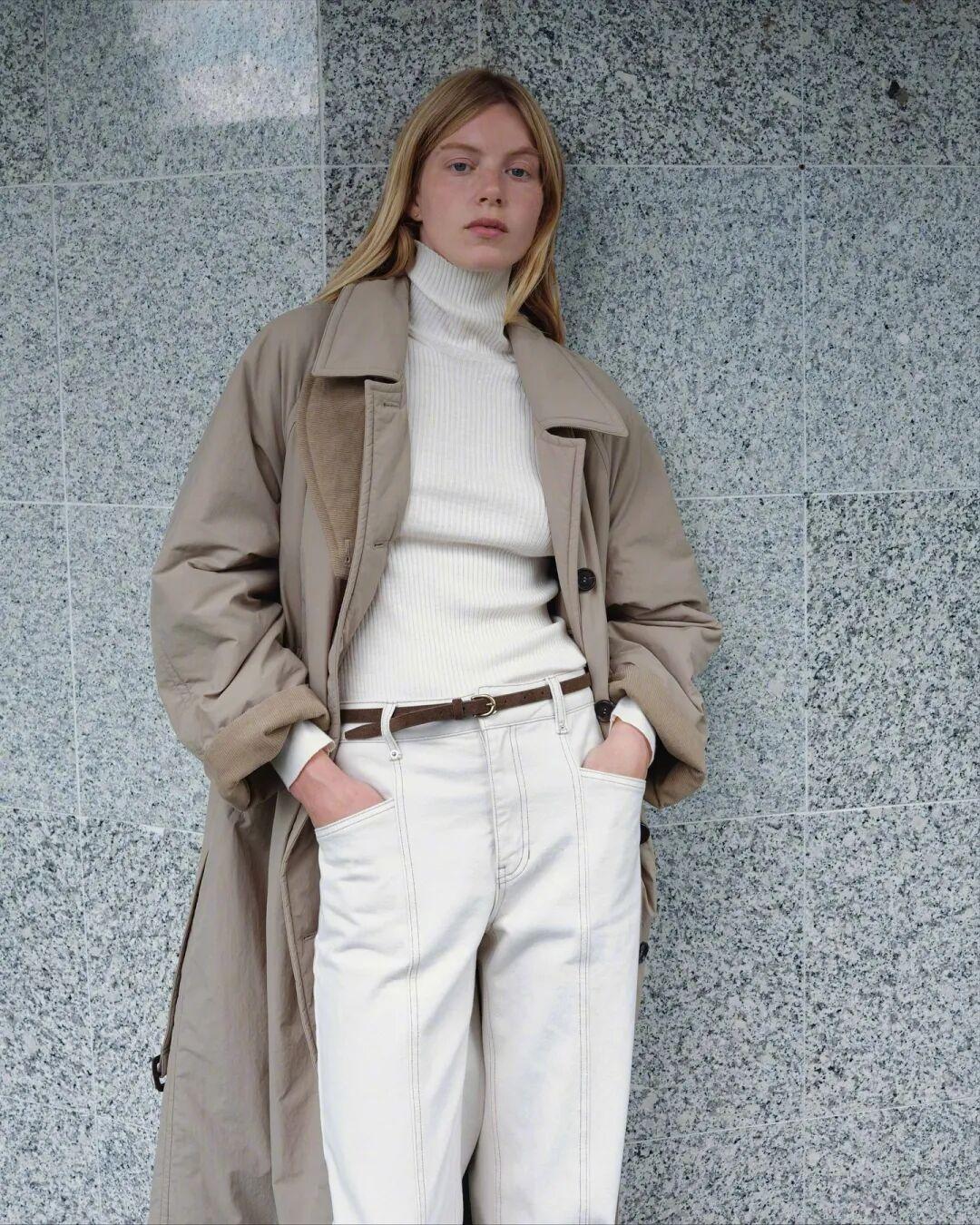 棕色外套太火了,但普遍對黃皮沒那麼友好。這就輪到白色發揮用處了!