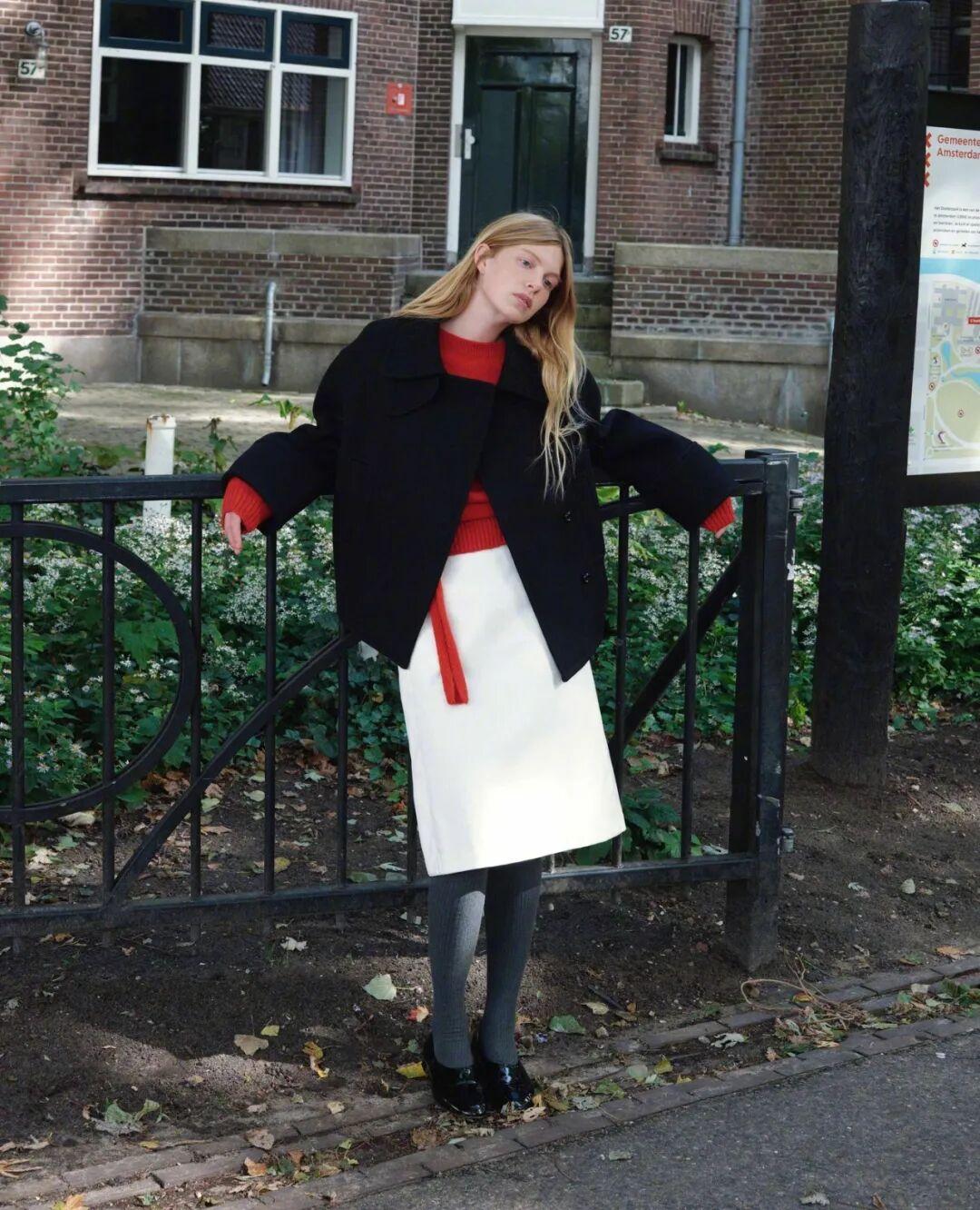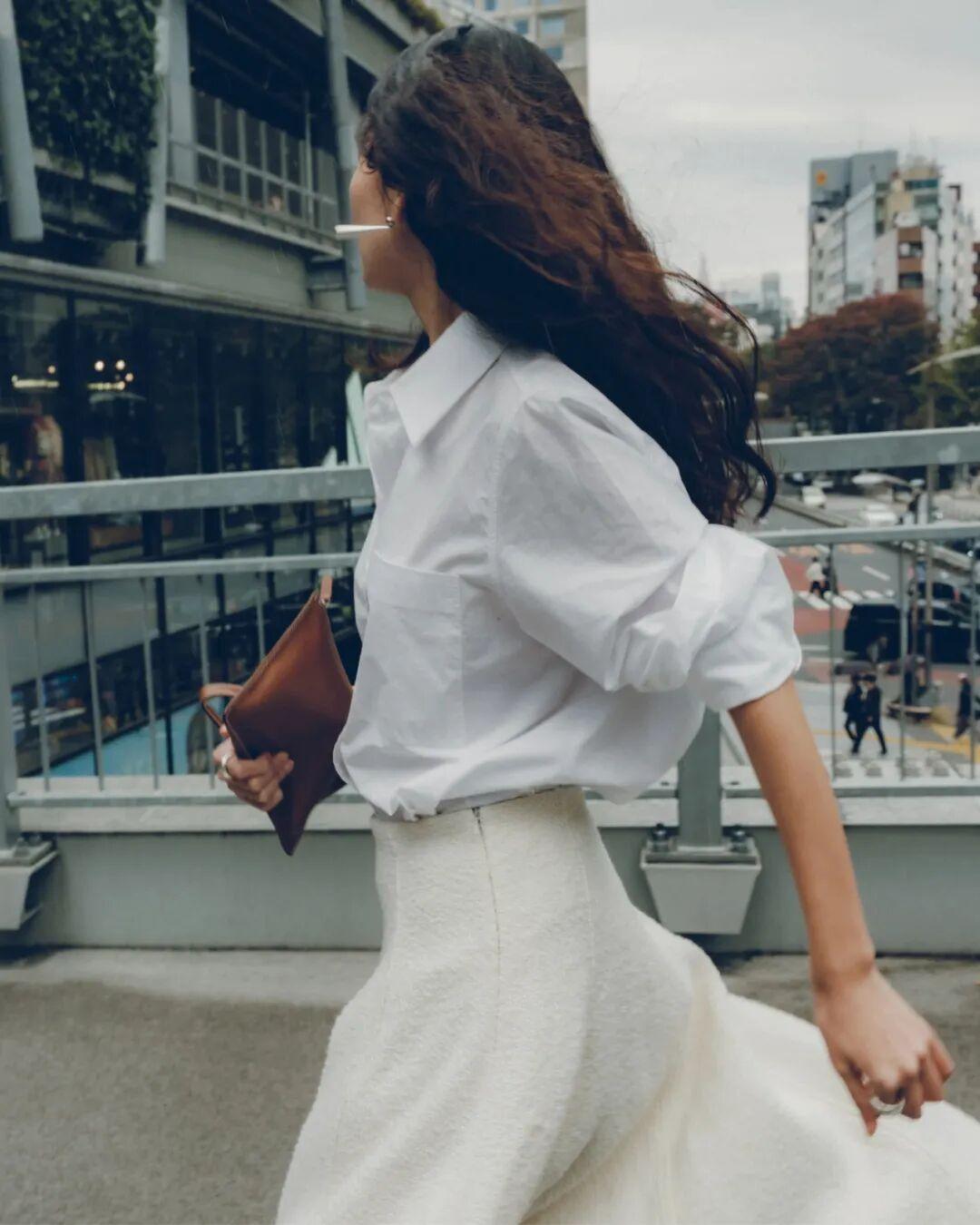 同理也適用於半裙,要麼料子垂墜、要麼版型是窄裙,會更好搭配。▼