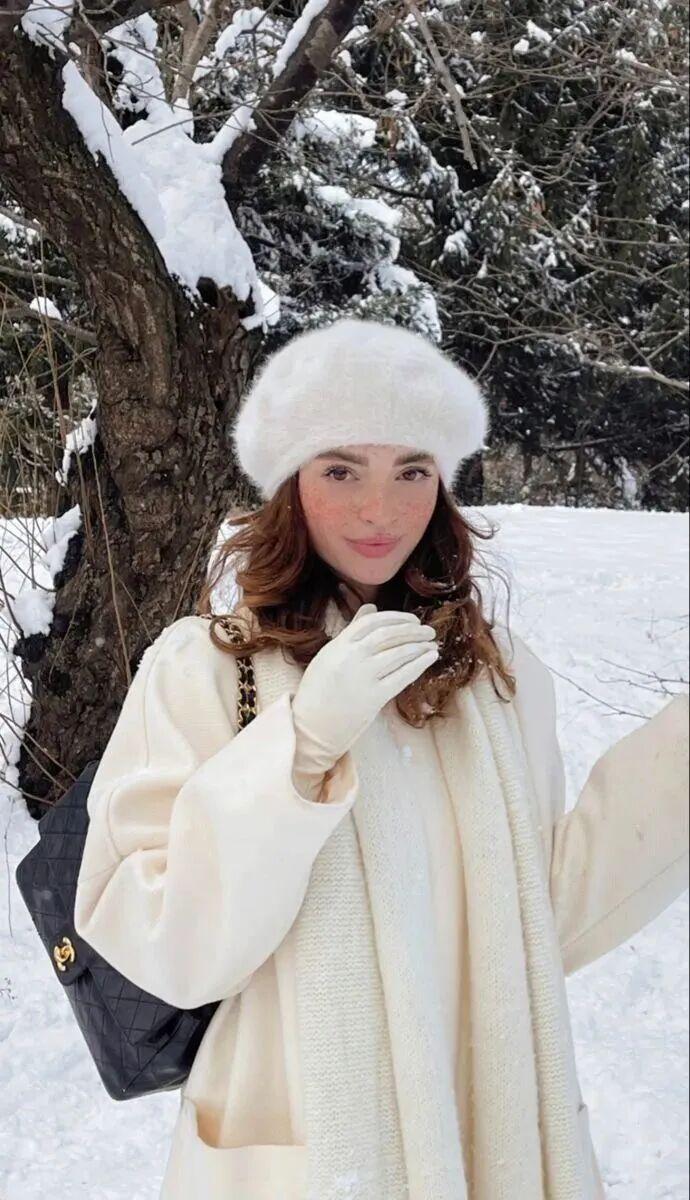 如果實在擔心白色大衣容易髒,其實也可以換成帽子圍巾等暖融融的白色小物,同樣是氛圍感神器~▼