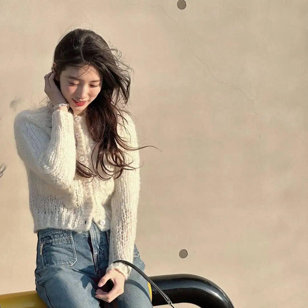 “奶奶風”開衫會增加復古感。秀智這件Celine是短款的,強調了腰線。▼