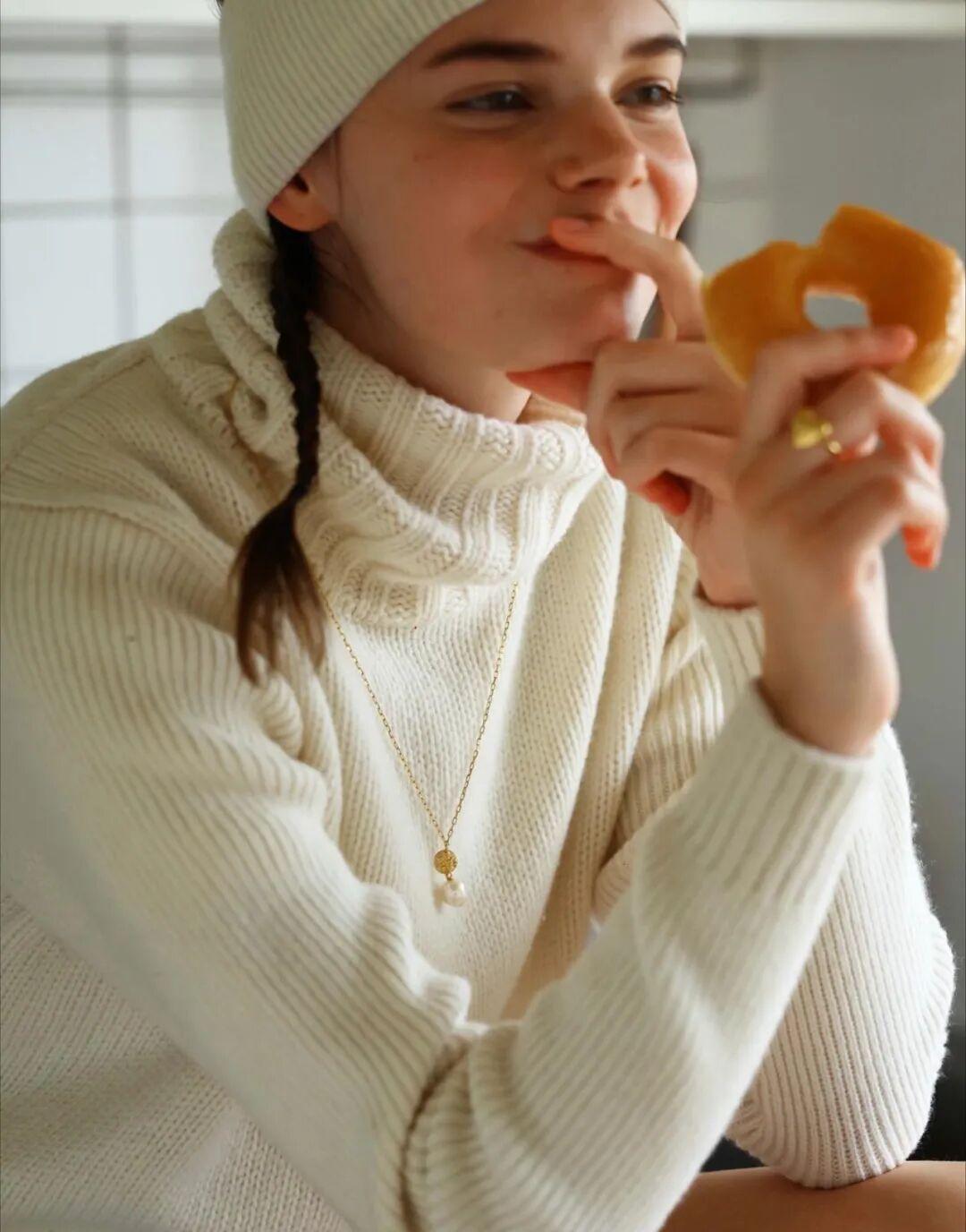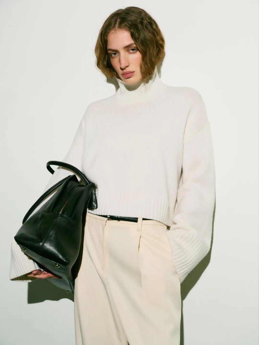 高領毛衣會喫掉脖子,白色領子弄髒的風險也比較大,但確實經典又好搭配。