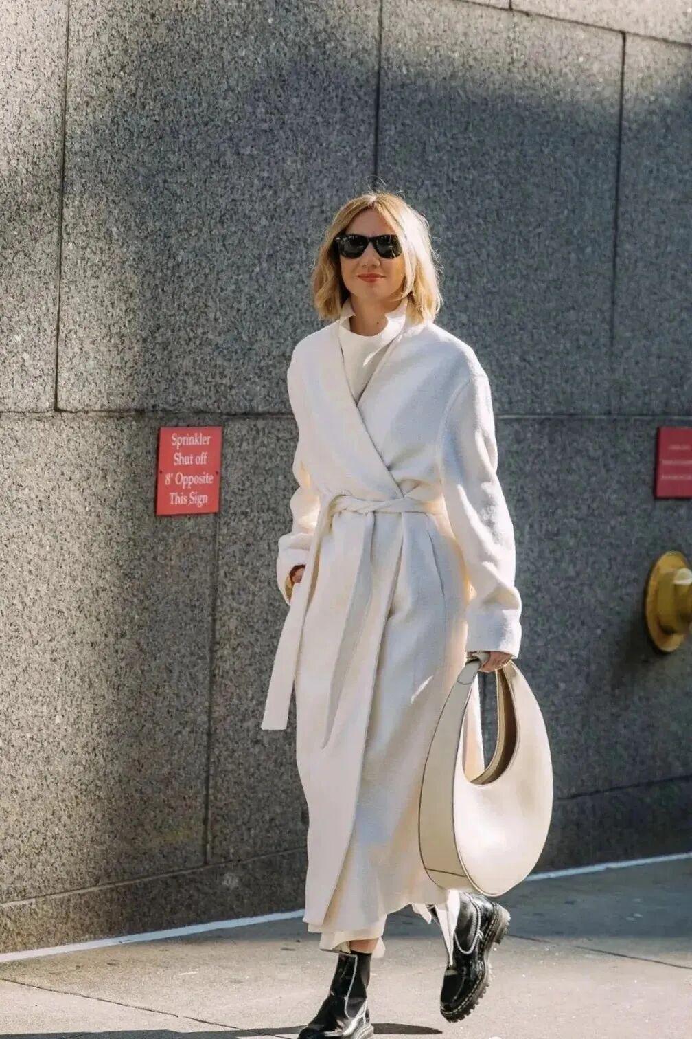浴袍款也比較好穿。用腰帶打造X型廓形,優化比例的同時顯得精氣神十足。▼