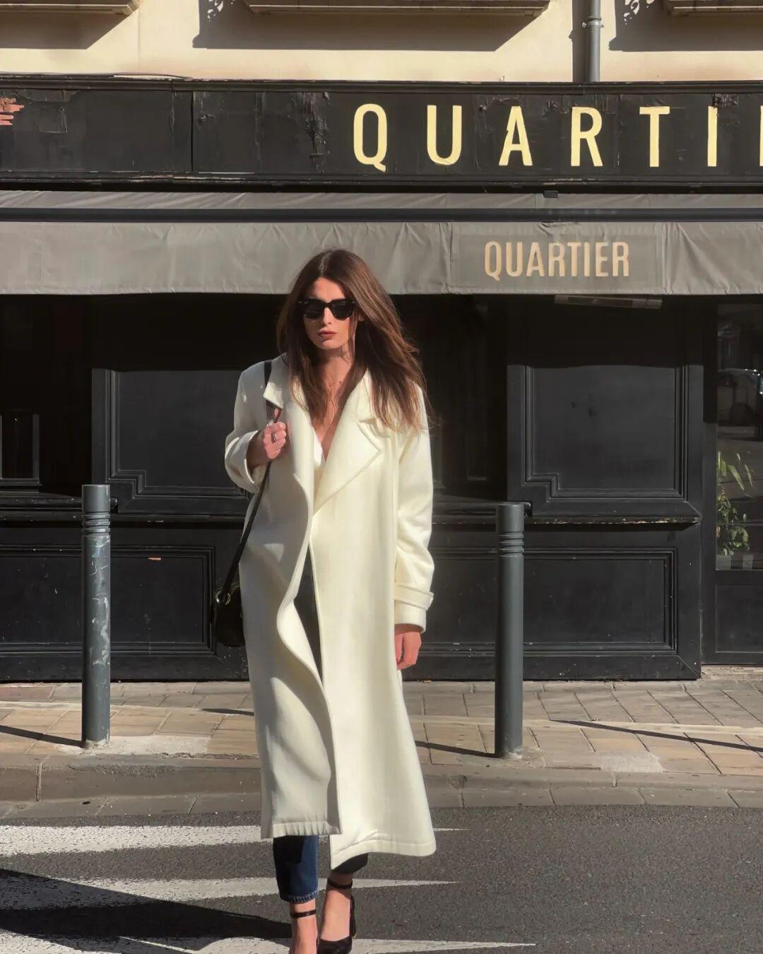 白色大衣挺顯貴氣,但要注意面料的挑選。淺色衣服更容易暴露面料缺點,如果要買白色大衣,就在預算內買好的。