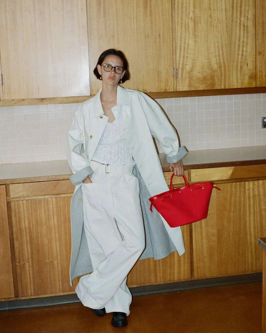 今年很火的各種白色外套,都要配白色單品才更能發揮出它的文藝屬性。▼