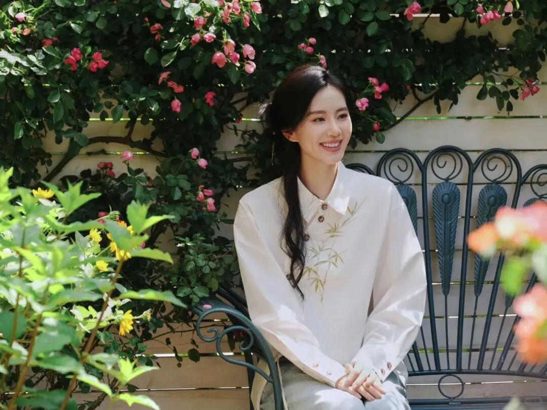 更日常一點的話,可以用新中式上衣搭配牛仔單品。▼