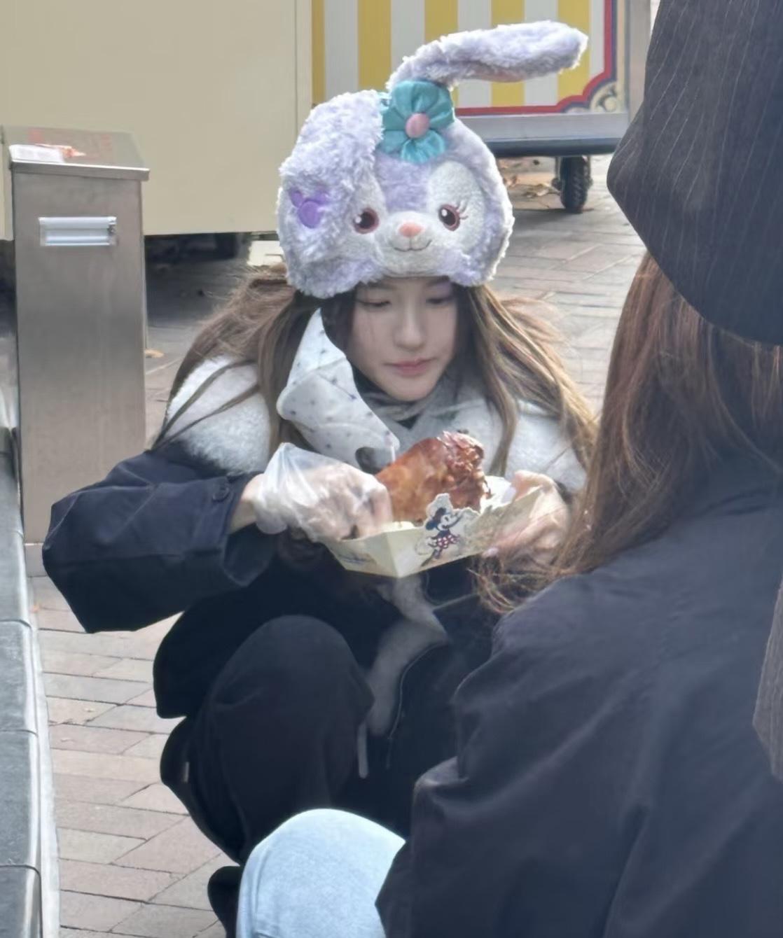 趙露思曾黎逛迪士尼,下巴變尖鼻子變高韓味重,蹲地啃雞腿好可愛