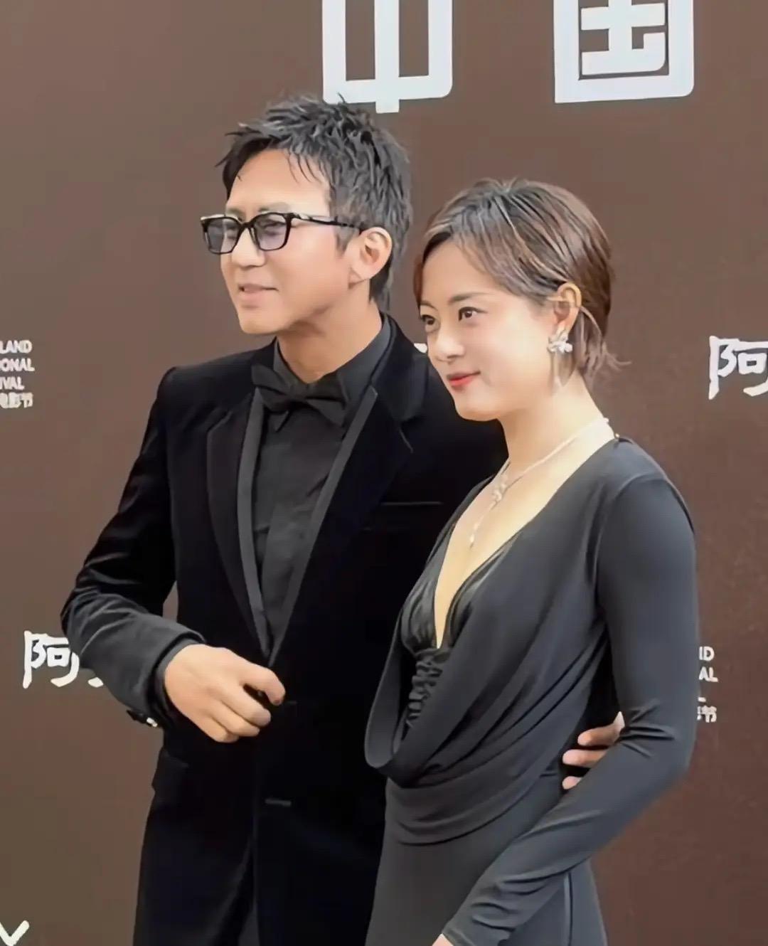 不知是不是孫儷太白的緣故,鄧超的皮膚顯得黑了幾個度。而且鄧超脖子和臉上的皺紋都很明顯,他摟着老婆的腰、滿臉都是小得意。