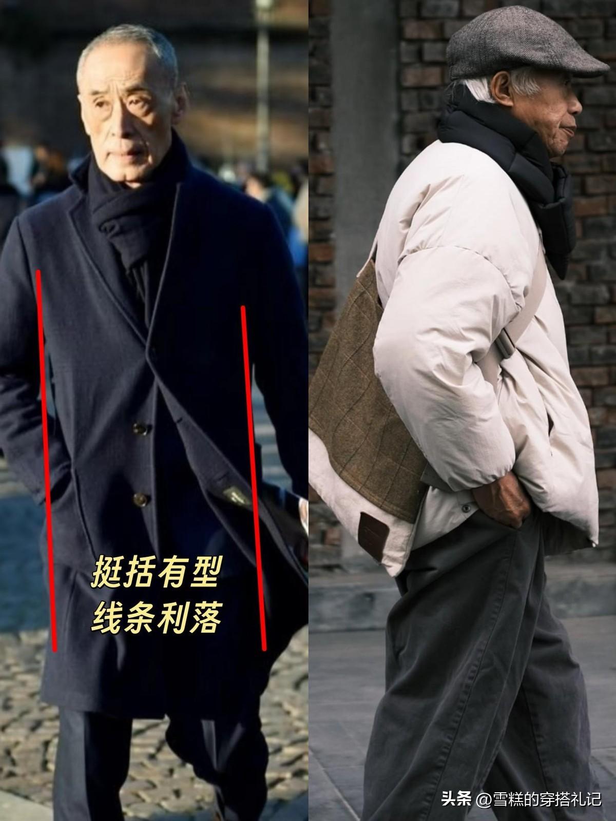 尤其是挑選外套的時候,上海爺爺就特別喜歡剪裁挺括、線條利落的大衣,和羽絨服比起來,要更加幹練大氣,再配合上毛衣和圍巾,才能相互輝映。