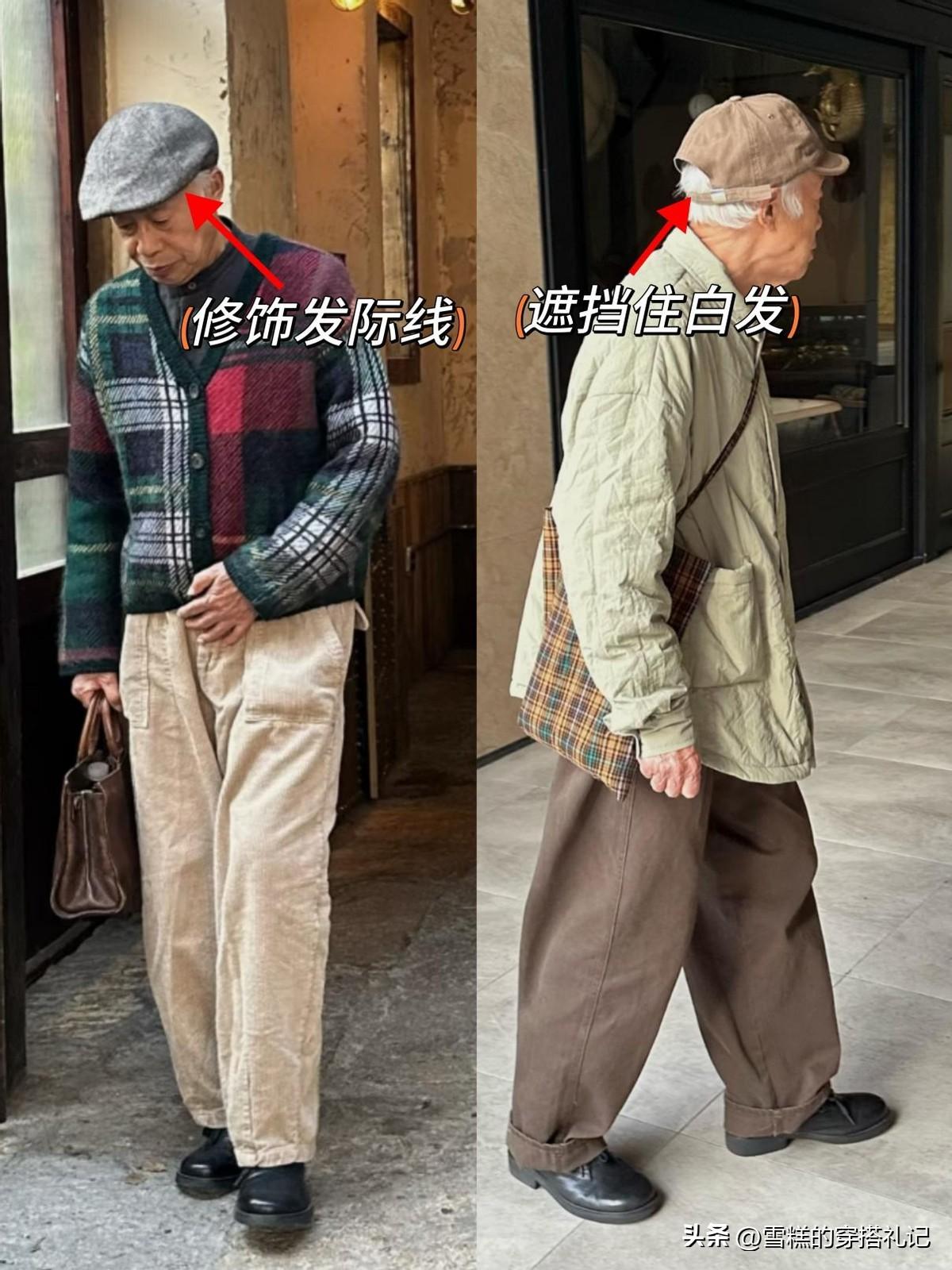上海爺爺就參透到了這個關鍵點,每次出門的時候,都會習慣性的戴頂帽子,不僅能夠抵禦寒冷,還能遮擋白髮、修飾髮際線、蓋住抬頭紋。