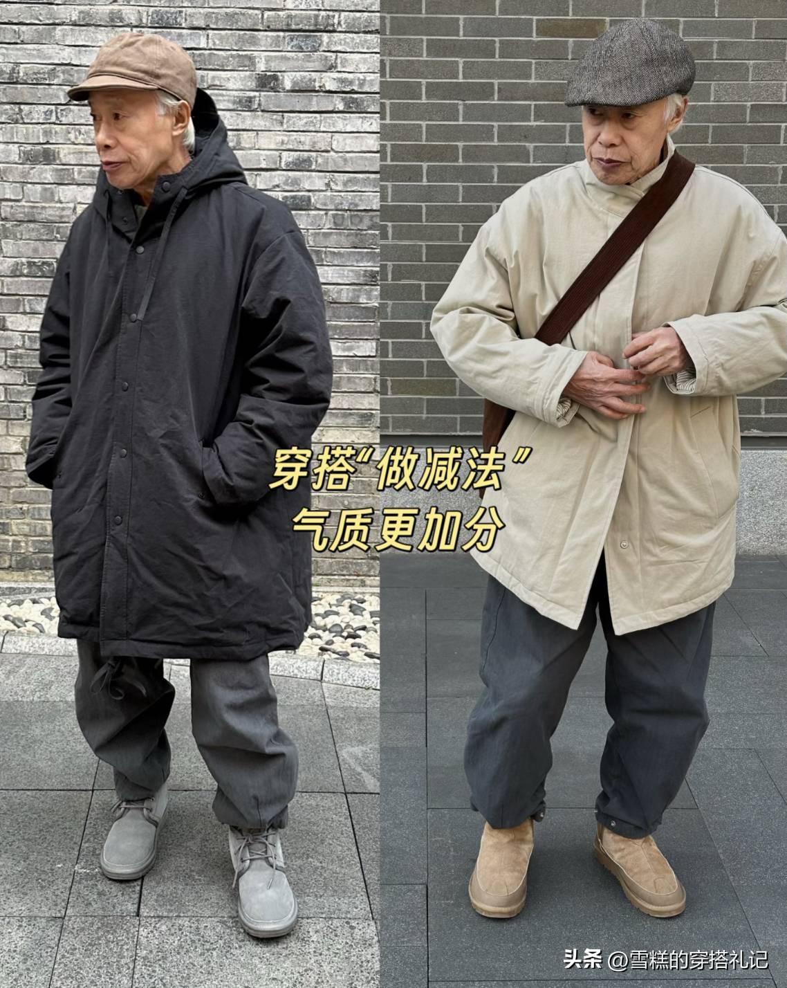 爺爺輩在穿搭當中,一定要學會“做減法”,有了帽子和圍巾的加持,就不要再有多餘的圖案、裝飾和元素了,否則會顯得多此一舉,款式越基礎,駕馭難度反而越低,輕鬆打破年齡帶來的威脅!