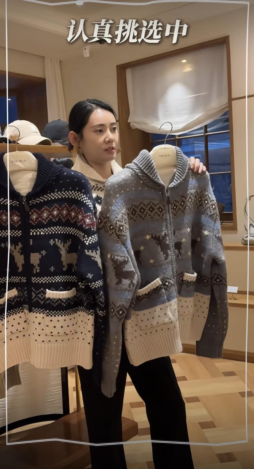 很韓系的毛衣,秋瓷炫選款的時候也是有些猶豫的。明明是幾件款式差不多的衣服,只有顏色不一樣,秋瓷炫卻遲遲選不出來,最後只能統統都拿下了。
