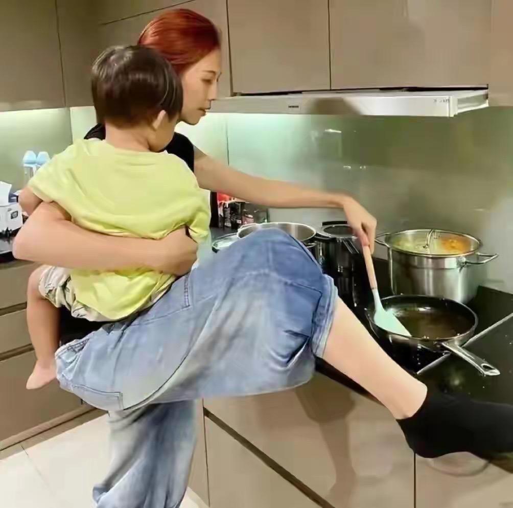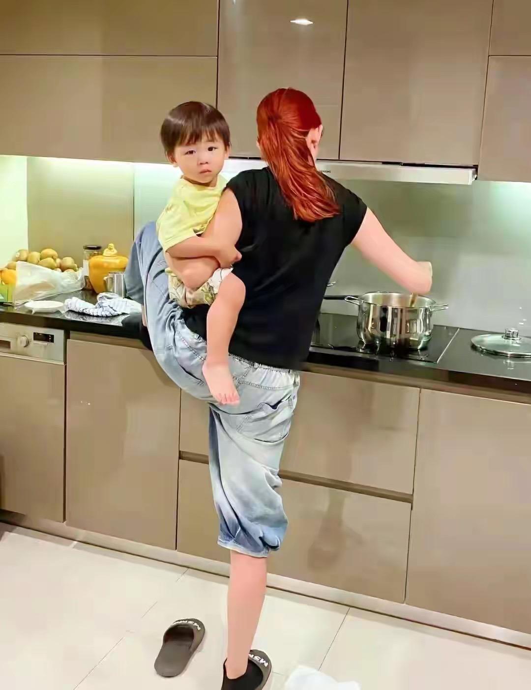 52歲蔡少芬現狀曝光:一家五口擠80平房子,一手抱娃一手炒菜