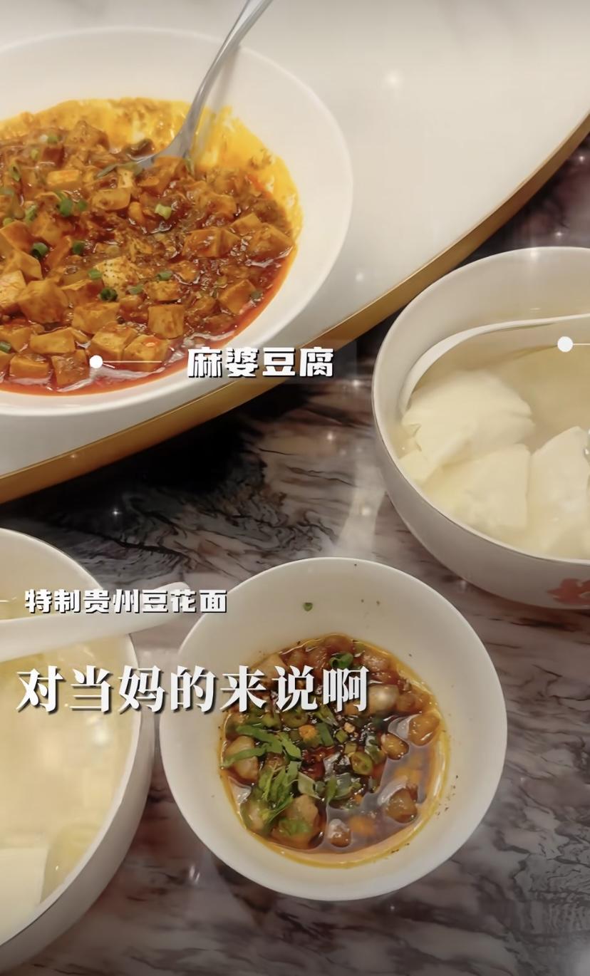 冉瑩穎不光做了豆花面,還做了麻婆豆腐,雖然菜品不多、但只有豆腐做成的一頓晚飯,也可以稱爲“豆腐宴”。麻婆豆腐裏面還加了肉丁、新鮮的小蔥粒,看着賣相很好。