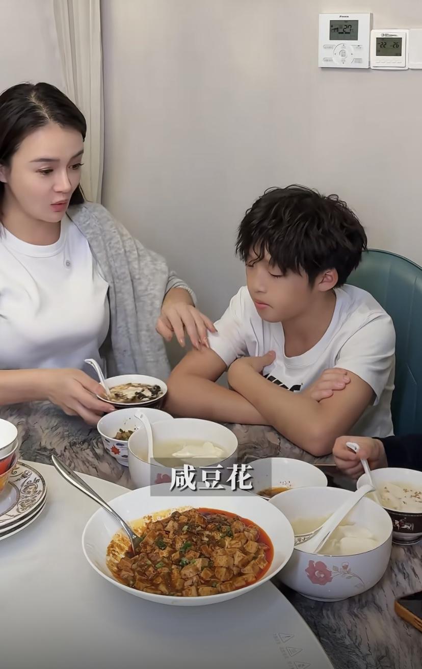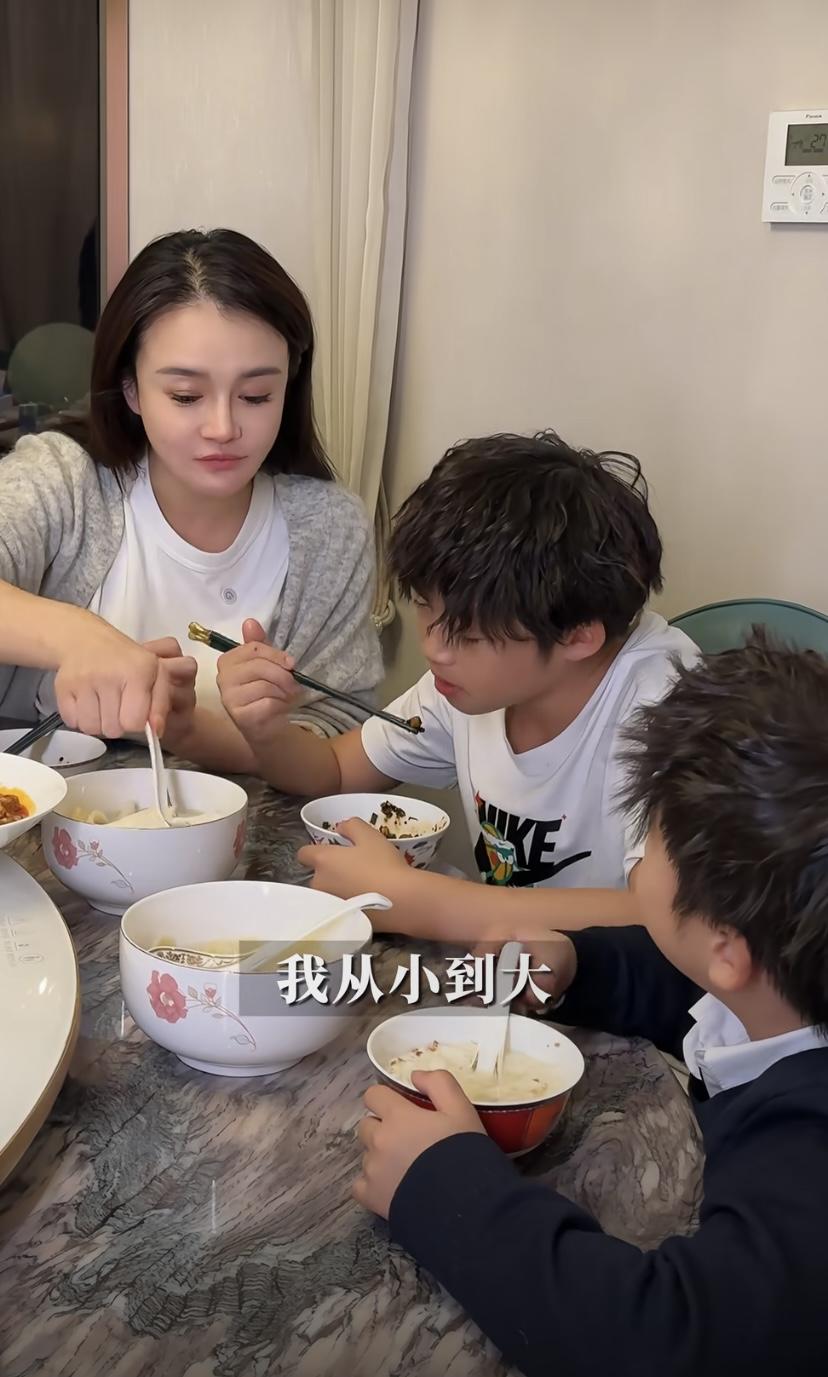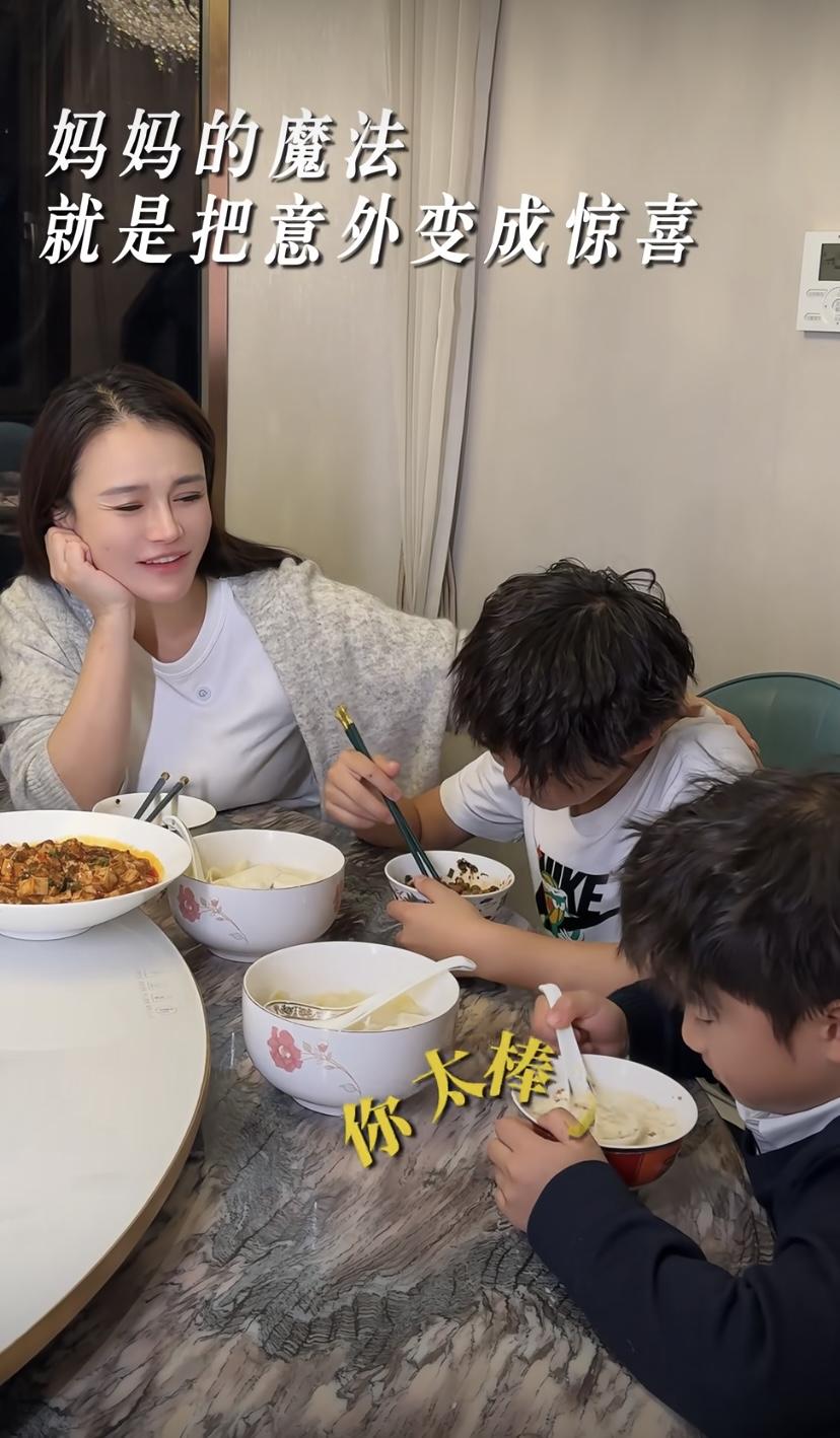 冉瑩穎在上海住400平豪宅,冰箱沒菜做豆花面,倆兒子只喫一小碗