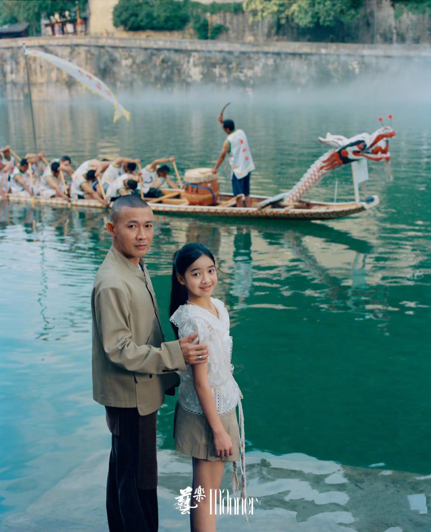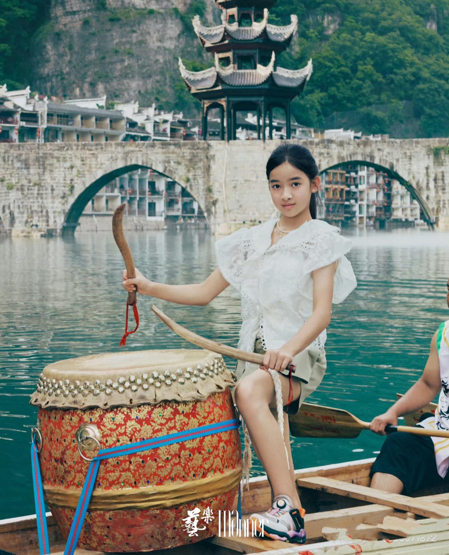 在天天身上,也有一種野性的力量,當她坐在龍舟上打鼓的時候,眉眼都變得犀利起來。小姑娘一張高級臉,真的特別適合走演藝圈這條路。