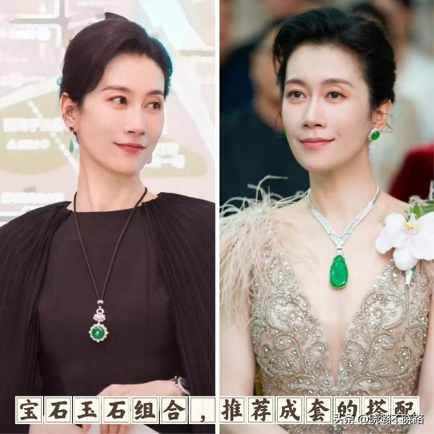寶石、玉石這樣的首飾在進行搭配的時候,儘可能的使其成套的出現,因爲它本身就是成套的組合,更加的具有保值效果,價位也比較高一些,所以呈現出來的貴氣感更更加的明顯。上了年紀之後,我們真的可以攢一點預算,入手一套自己比較喜歡的翡翠或者是瑪瑙的首飾。