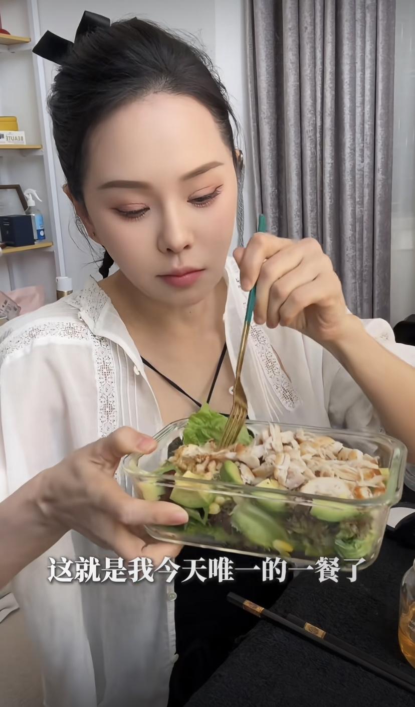 爲了減肥,伊能靜選擇了輕斷食的方式。她每天只喫一頓飯,而且這一頓還是蔬菜沙拉。看着盤子裏只有幾片青菜葉子、還有幾塊雞胸肉,感覺根本都喫不飽。