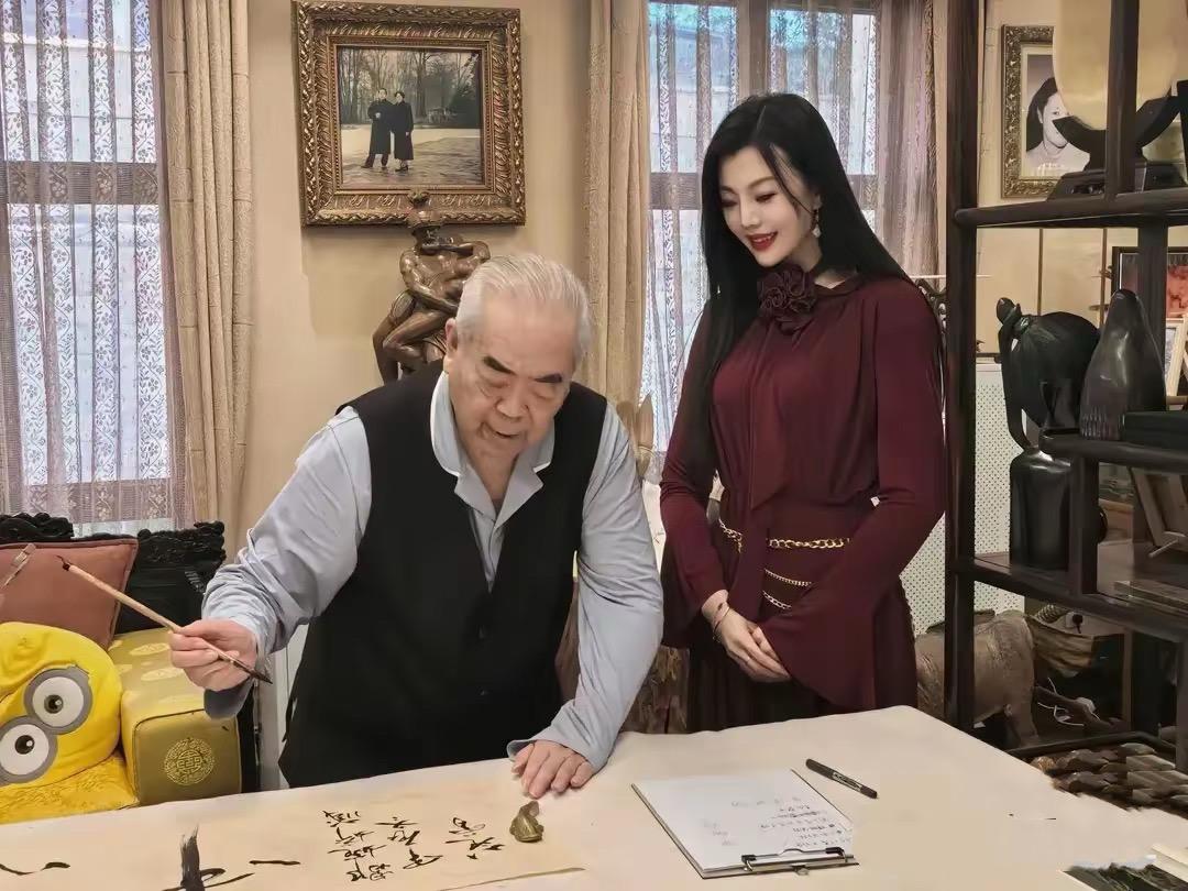 當時範曾持股的公司,仍在在賣範曾字畫。明確回應了“失聯謠言”,接着就是範曾繼子發佈和老爺子一起看展的照片,疑似回應風波。