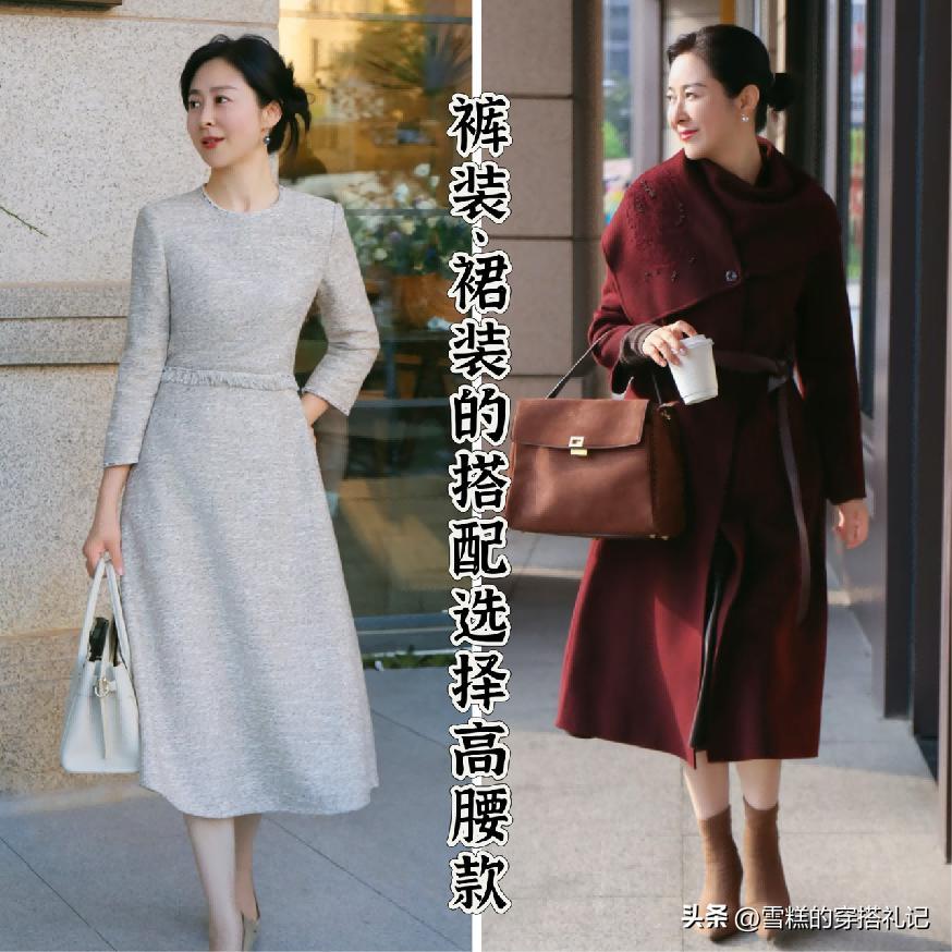 下半身系列的單品例如像褲裝和裙裝,在進行搭配的時候,一定要優先於認準高腰的設計,這對於上了年紀的女性來說,襯托出來的身材比例優勢,又或者是整體的氣質狀態,這兩個關鍵的點都有所影響。本身比例就不是很好看,又或者是個子比較小,那麼在到中年階段的時候,想要襯托出來一個有品位有高級感的效果,上短下長的比例狀態一定是被襯托出來的。