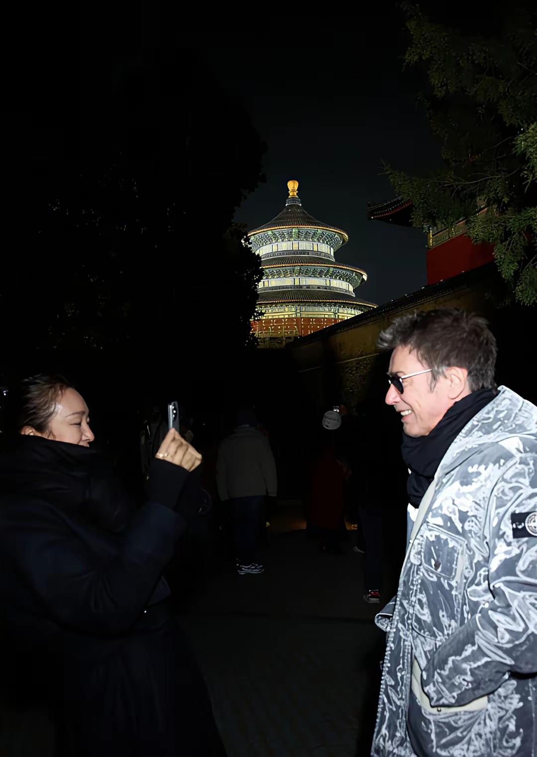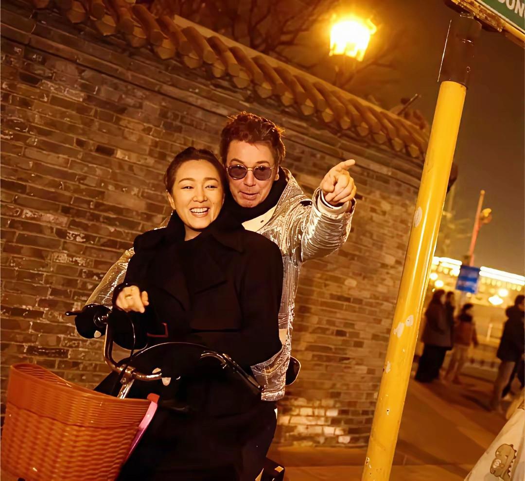 兩人時而並肩漫步,從鐘鼓樓的晨鐘暮鼓走到天安門廣場;時而騎行街頭,晚風拂過髮梢時相視一笑,鞏俐爲丈夫整理圍巾的細緻、舉手機記錄身影的專注,與銀幕上的霸氣形象形成可愛反差。