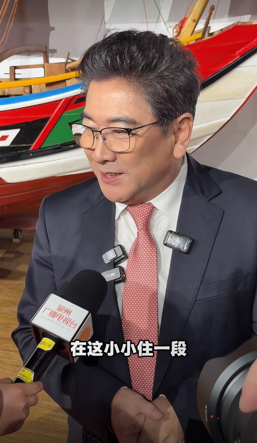 鏡頭前的水均益,穿着西服套裝、打着紅色領帶,笑起來還是那麼親和很有感染力。他到泉州主持晚會,也趁機會到女兒家裏小住。