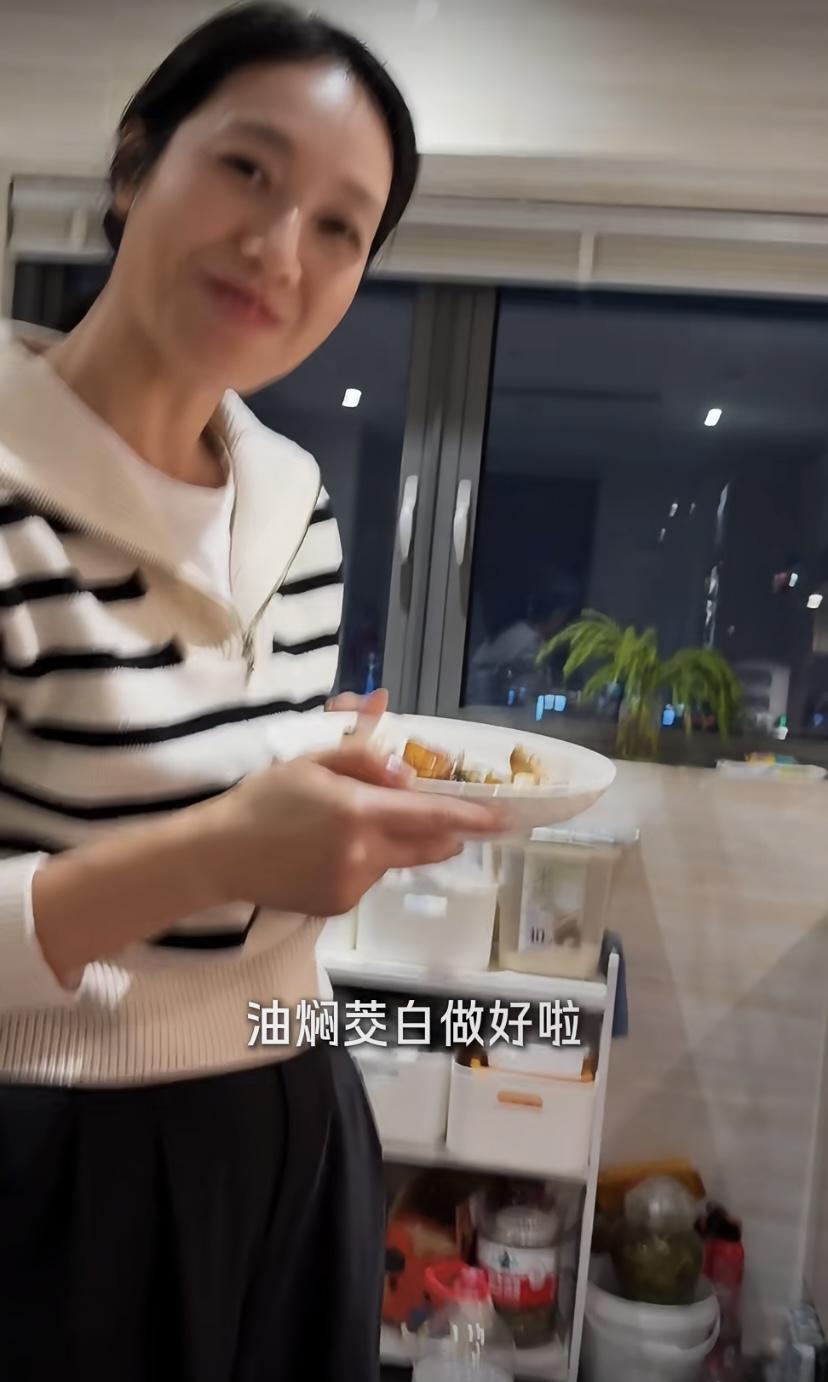從老家回來,朱丹也帶了新鮮的蔬菜。來到杭州豪宅,她和女兒一起用從外婆家裏帶來的菜做飯,母女倆都很享受這種美好的時光。