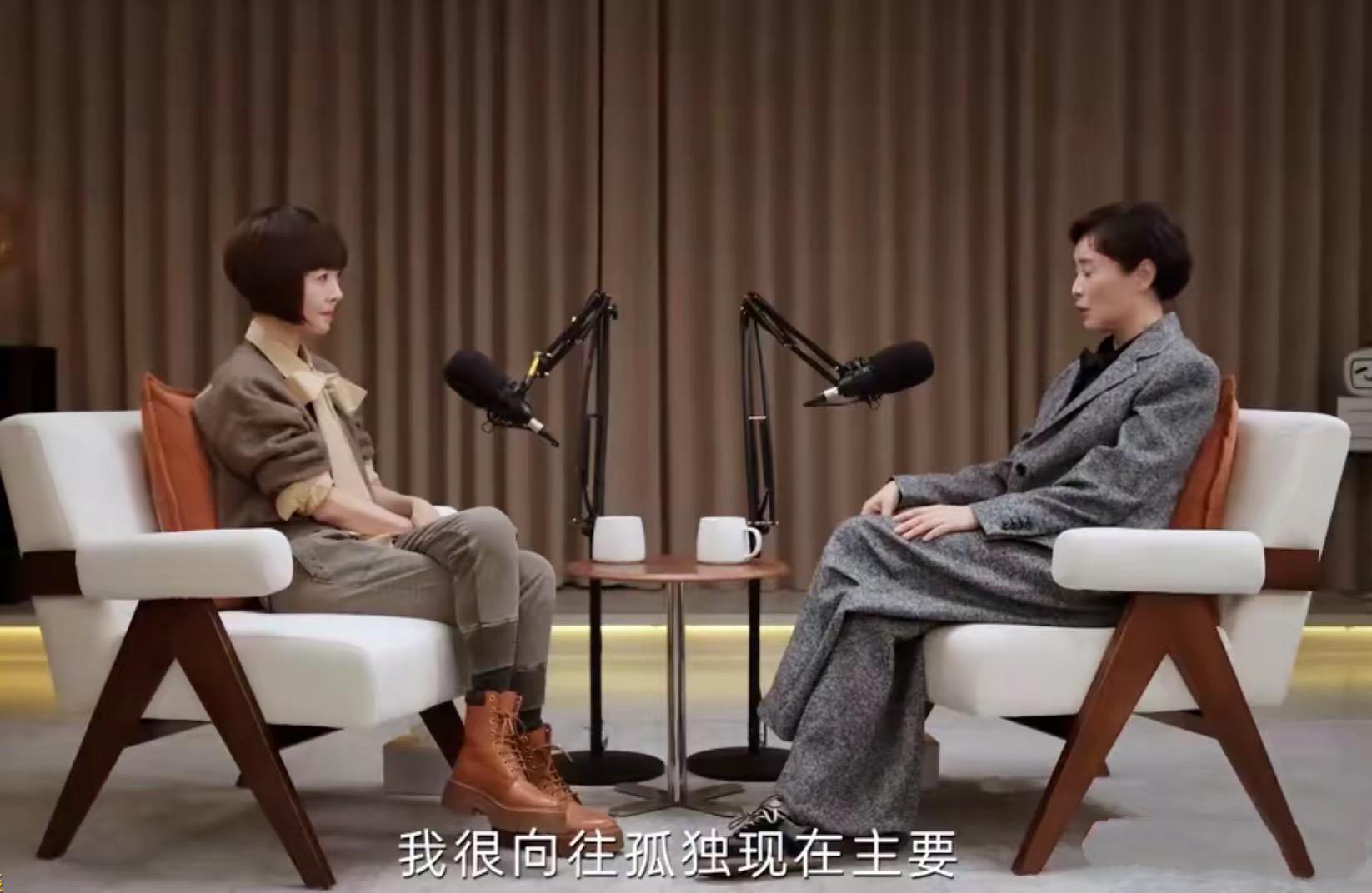 在一檔魯豫主持的訪談節目中,吳越曝光了自己的生活現狀。她穿一身花灰色的西服套裝,雙腿交叉、自然的靠在椅背上,侃侃而談。