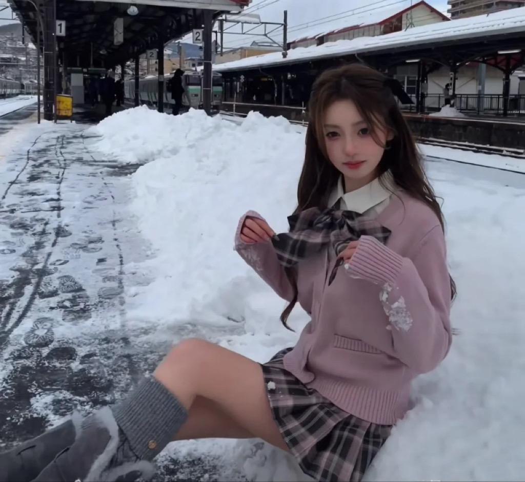 懶懶到底有多狠?冰天雪地裏穿短裙,還直接坐在雪上。凍得小臉通紅,鼻尖都更立體了。這真不是一般人能做到的。