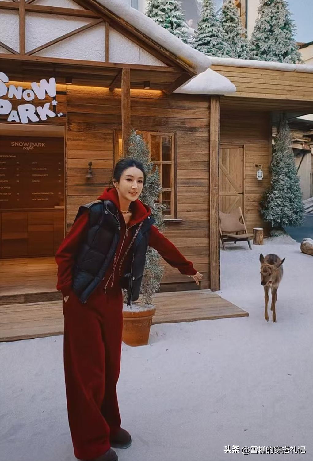 身穿紅色羽絨服,不僅展現了羽絨服的時尚潛力,更傳遞出一種態度:冬日穿搭無需妥協溫度與風度,只需一抹亮眼的紅,就能成爲寒冷季節中最動人的風景。