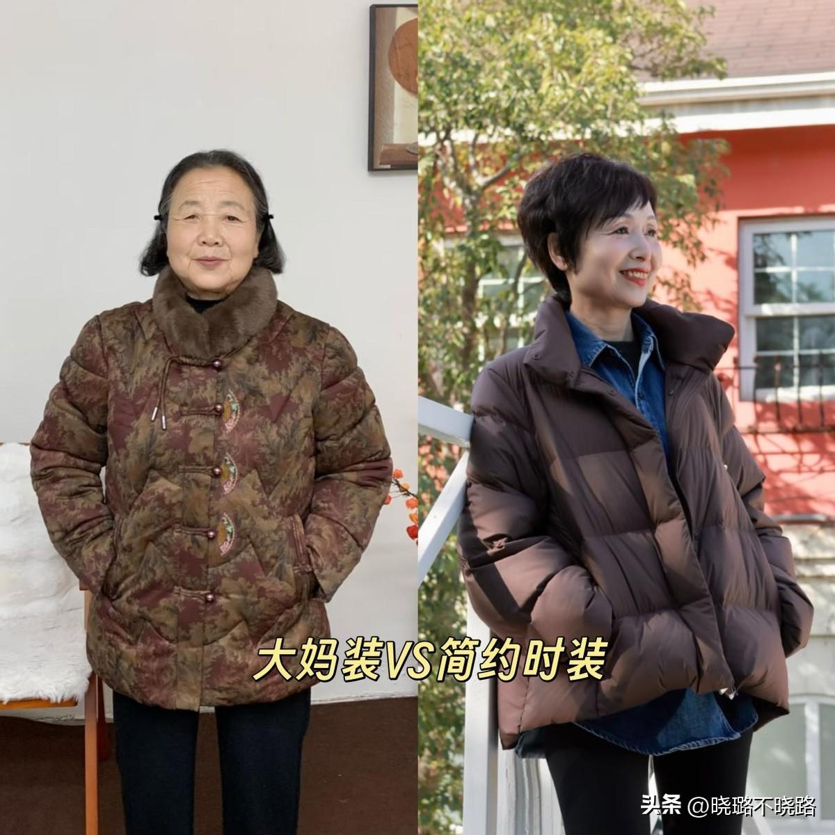 而且市面上大多數的大媽裝,都會採用廉價的化纖面料,版型寬鬆,保暖性差,需要在裏面疊搭各種毛衣、打底衫,最終呈現出來的效果更臃腫。