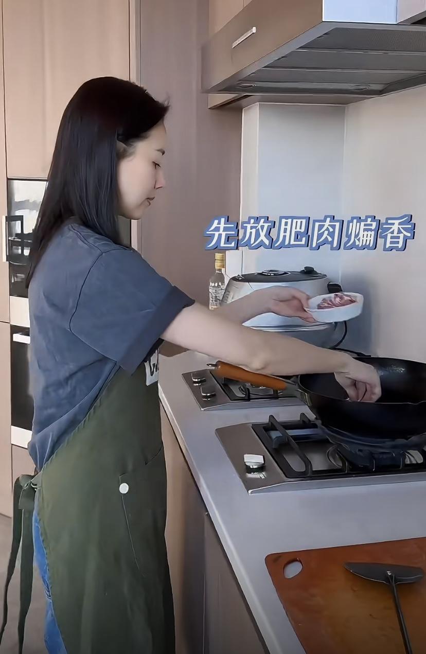 很多人自己做飯都是應付,能炒一個菜絕對不會炒兩個菜。董潔一個人都親自動手炒3個菜,也太自律了吧。