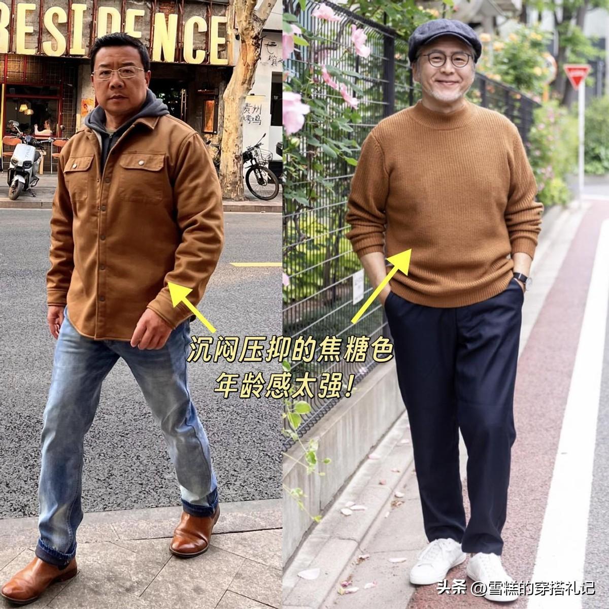 前段時間,焦糖色在網絡上爆紅,引起了很多中年男人的重視,紛紛覺得這種顏色穿在身上顯白又減齡,可實際上,卻是“油膩重災區”,不僅容易把精氣神壓沒,而且還會增加年齡感。