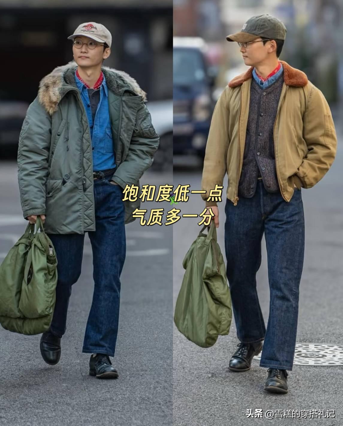中年男人想要減齡,不一定非得穿飽和度感的顏色,像這種低飽和度的軍綠色、卡其色、牛仔藍,瞬間讓你顯年輕10歲不止。