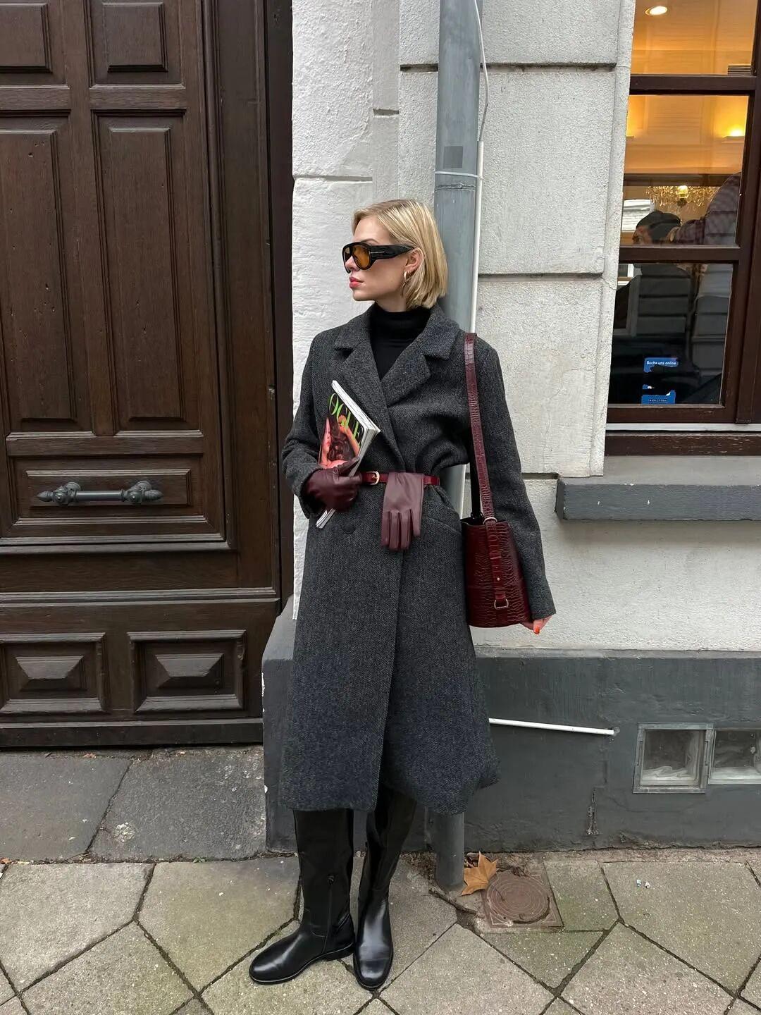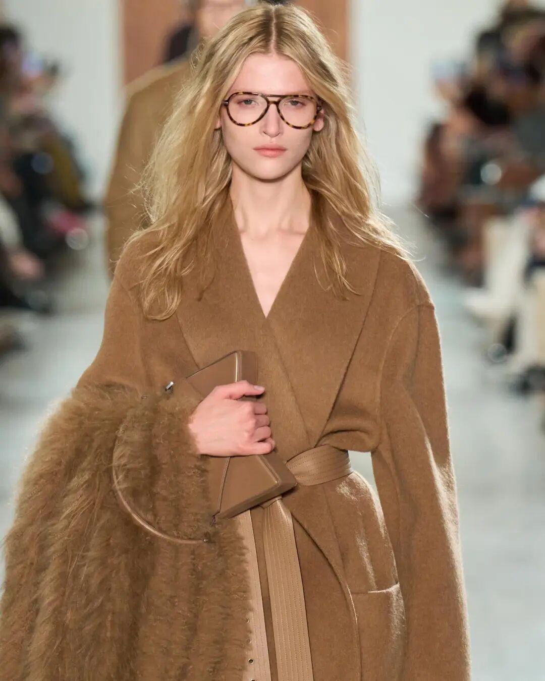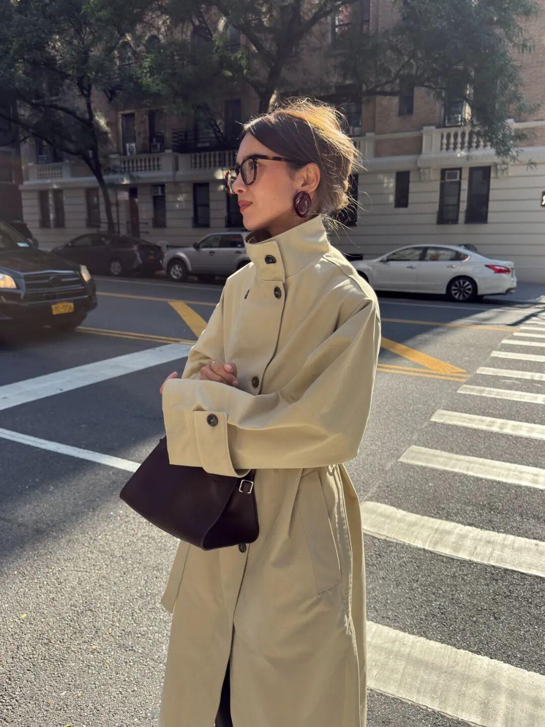 量感稍大的大衣也可以,圍巾優先選同色系的,貴氣加倍。在這個搭配裏,加入一副眼鏡框,可以破一破過於貴婦的氣質,更慵懶斯文。▼
