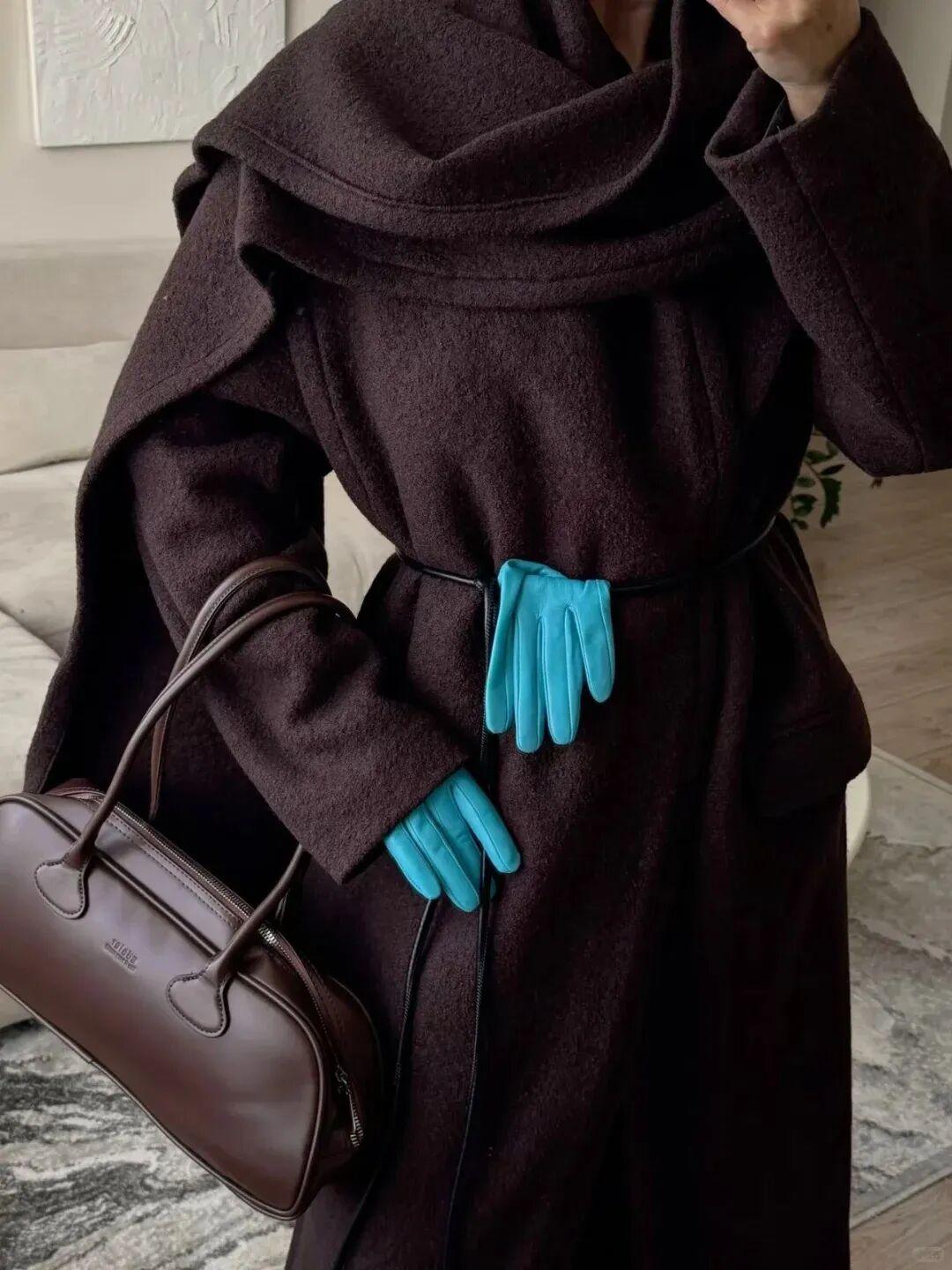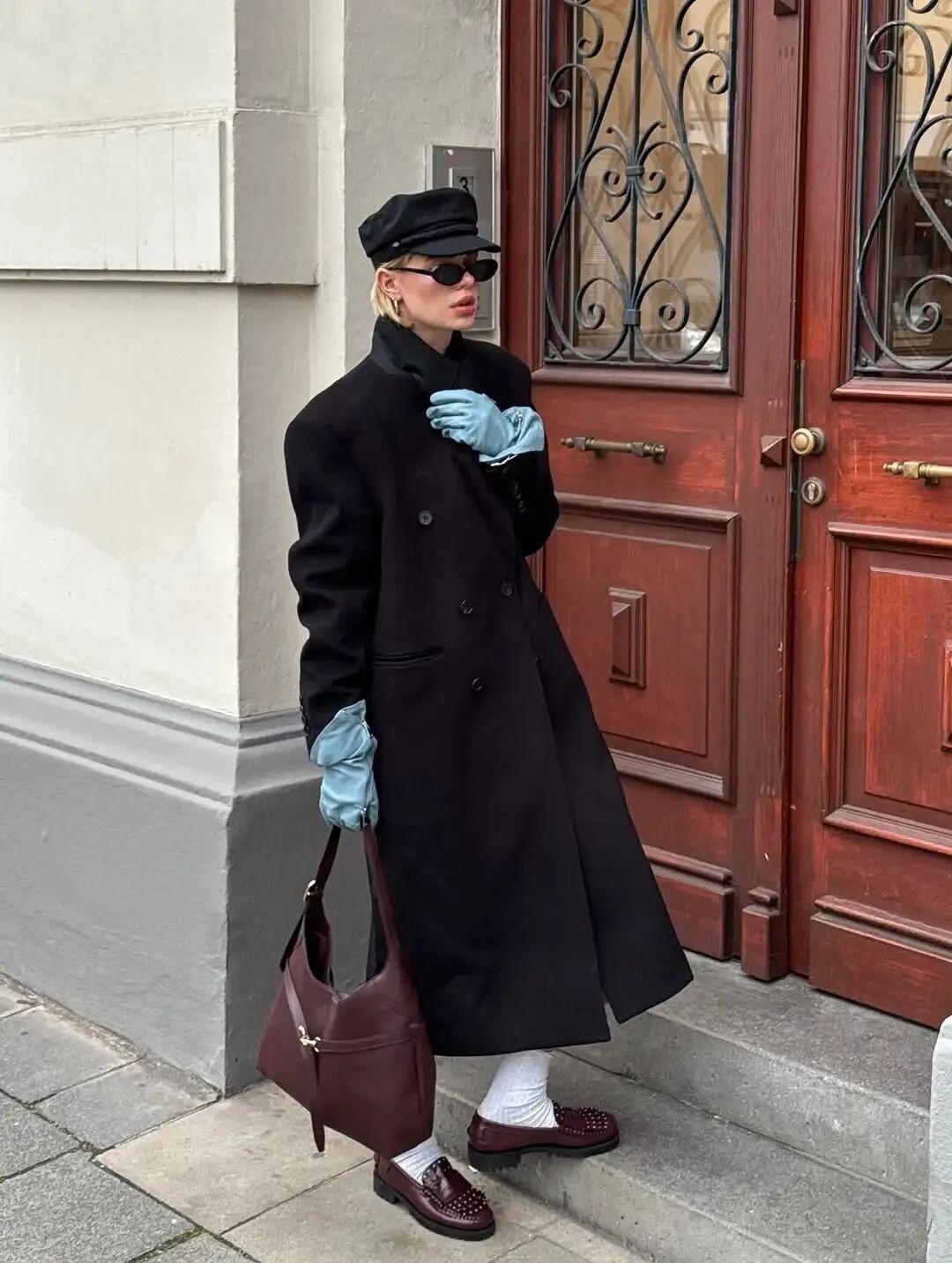 德國博主Linda.sza也有在用,小面積彩色點綴打破黑大衣的沉悶。▼