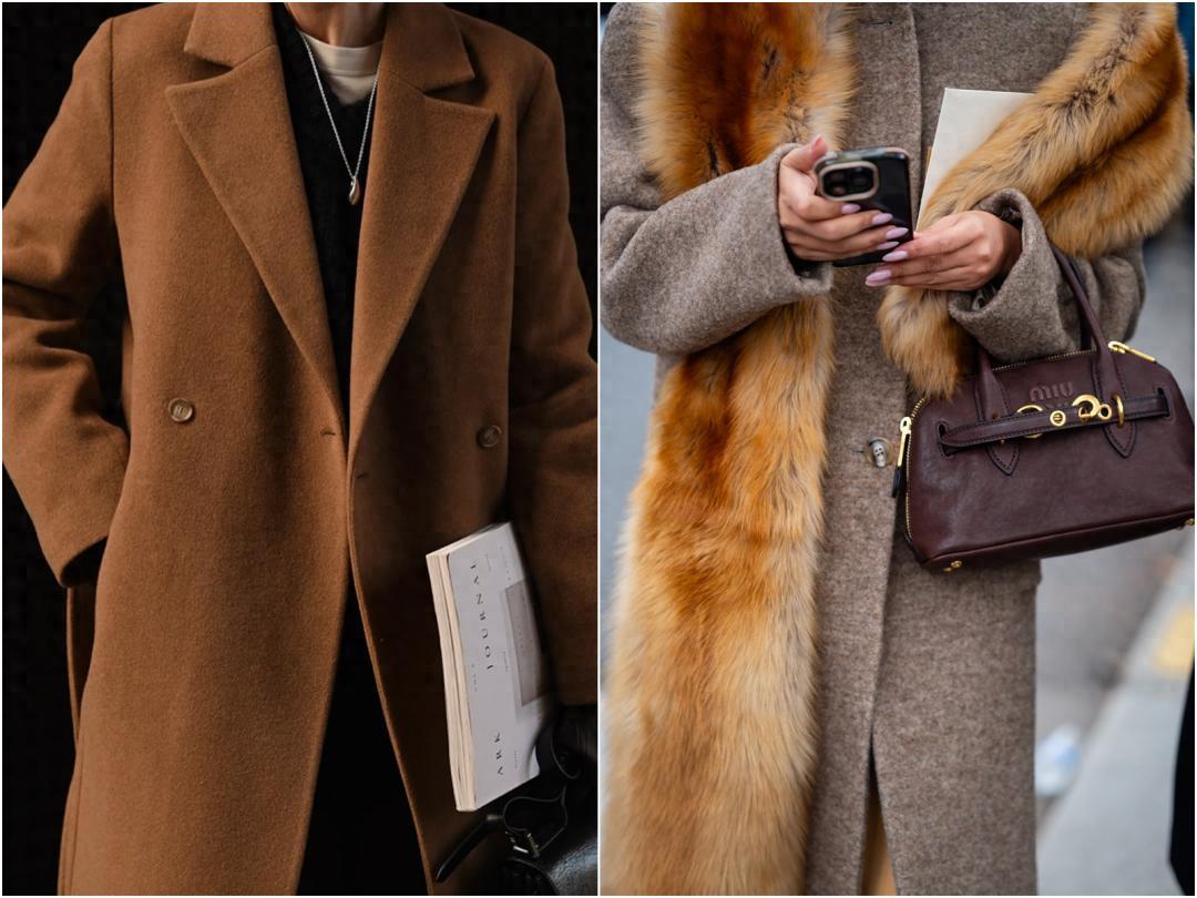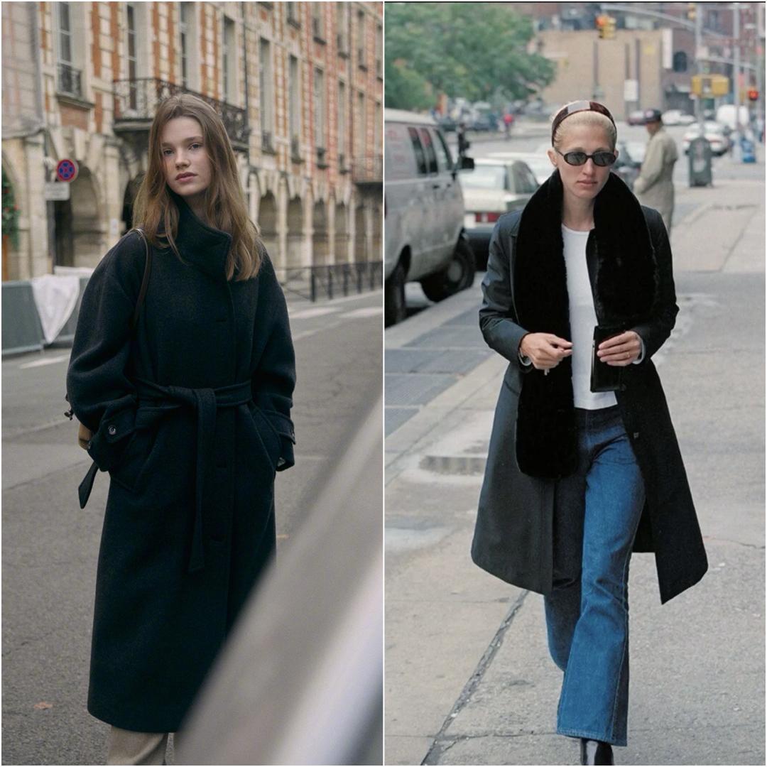 更日常的冬日大衣搭配:左邊沒有皮草更慵懶,右邊小肯尼迪夫人這身要貴氣一些。 ▼