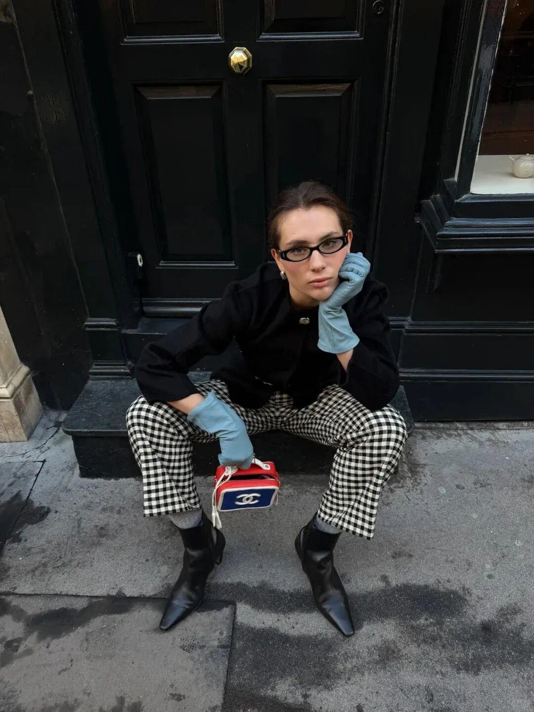2.加一雙 彩色皮手套,一秒變復古