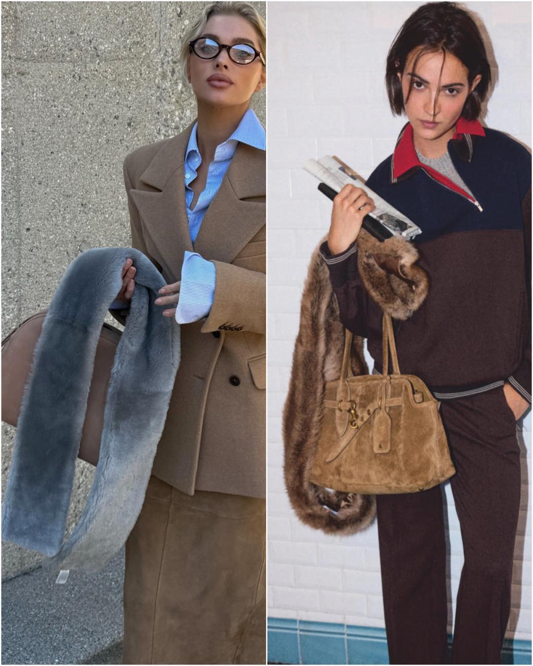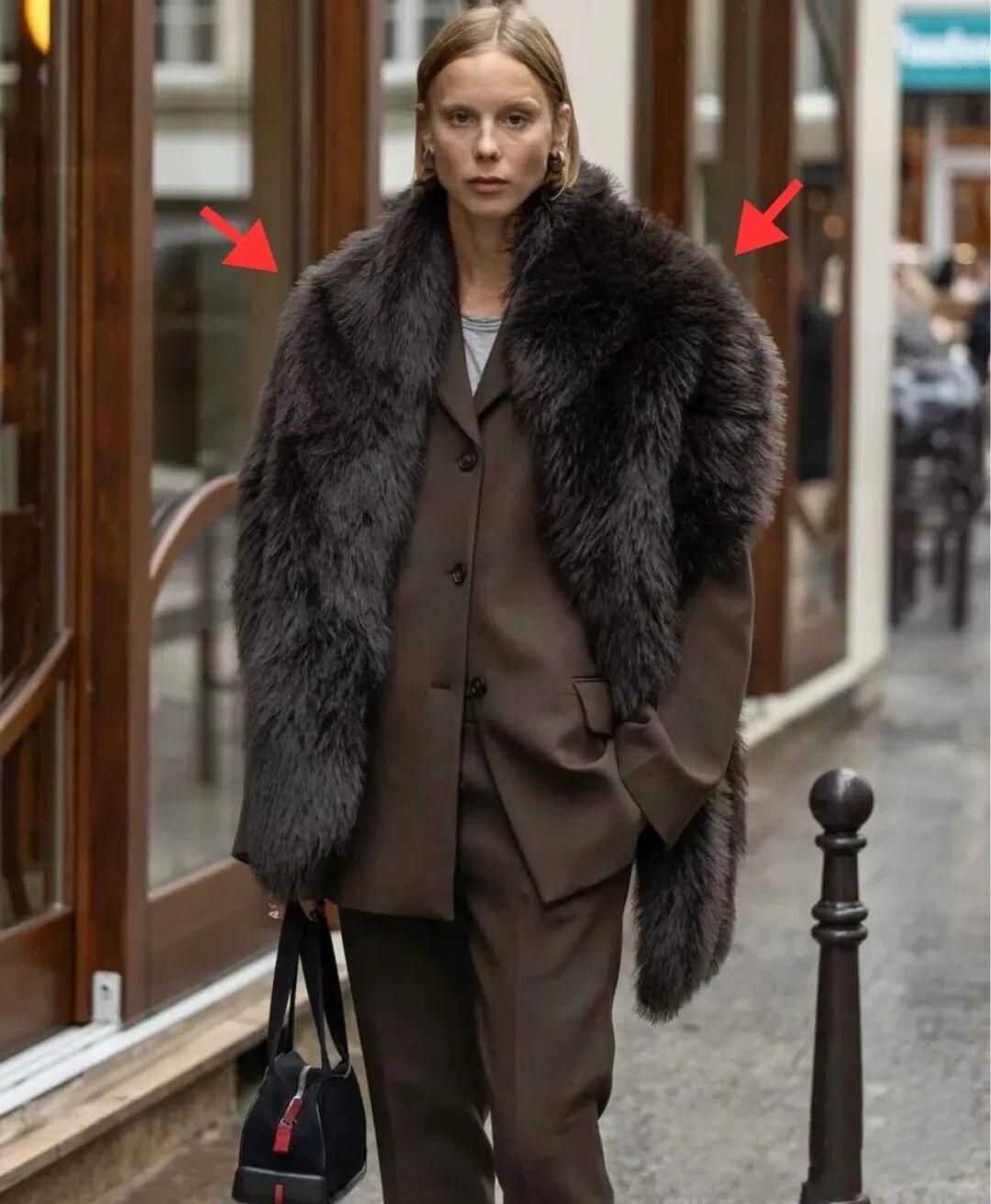如果很喜歡這份奢華感,其實用一條皮草圍巾就足夠營造氛圍,低成本就能穿出幾萬塊錢的感覺。