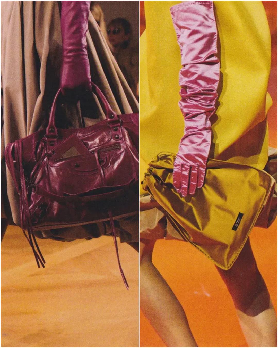 秀場上的彩色皮手套豐富得人眼花繚亂。巴黎世家、Prada▼