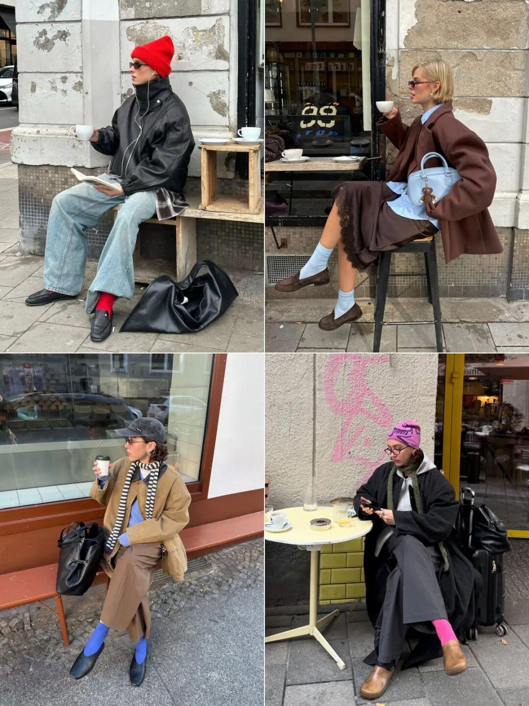 而用襪子點綴,可以說是最容易實現的,0門檻。對比下風格的不同,用彩色襪子去點綴會讓整個穿搭更有生機。▼