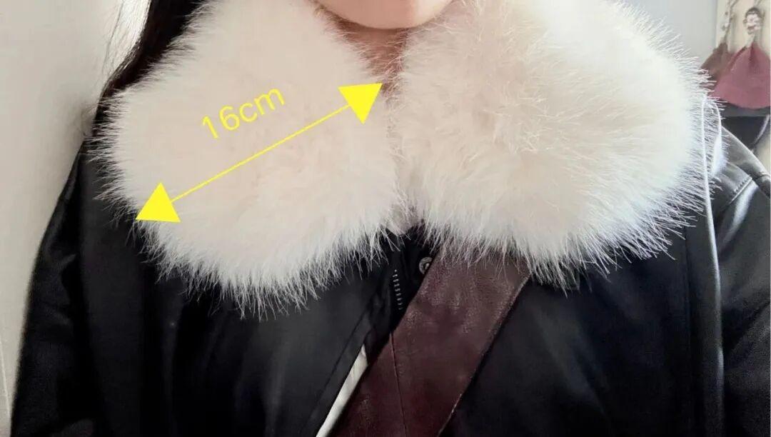 工作室的00後Heidi就有買一條類似的仿皮草圍脖,她身高168cm,這條毛領領圍是60cm,寬16cm左右,大家可以參考一下。 ▼