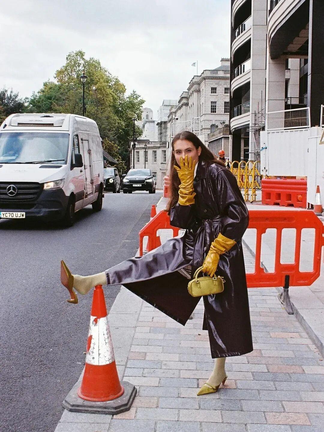 帶點彩色元素的街拍總是格外吸睛,立馬能在沉悶街景裏跳出來,哪怕穿搭再簡單,加了點彩就立馬有了記憶點。