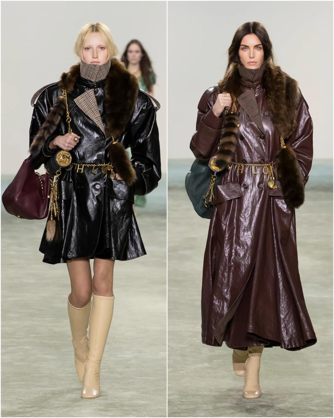 Chloe 25秋冬就用皮草圍巾搭配了各種長度的皮衣▼