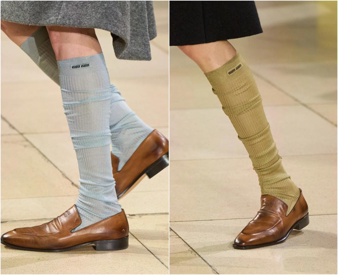 或者身上的某一個單品和襪子搭配一個色系來進行呼應。▼